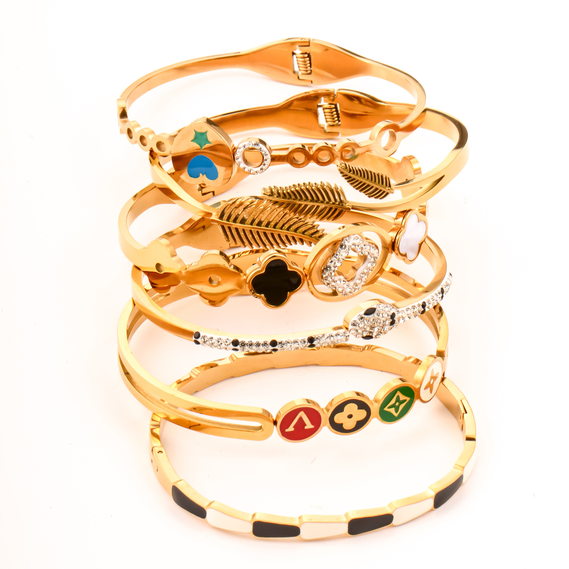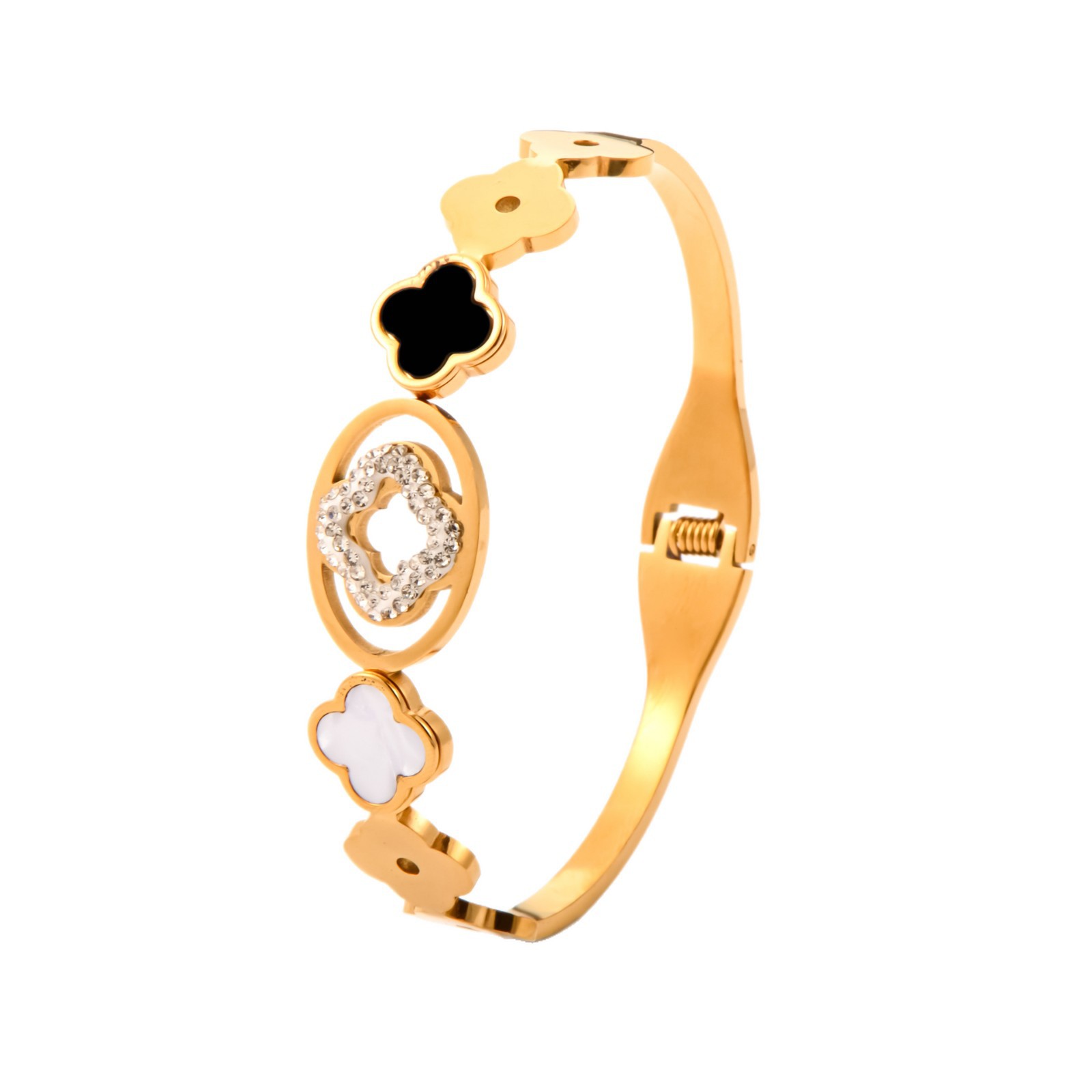 special interest light luxury hand jewelry clover geometric hollow oval spring fastener bracelet female fashion titanium steel bracelet wholesale