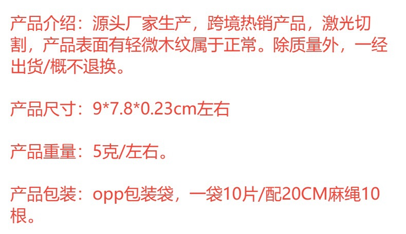 | 10 pieces (including 10 packing hemp ropes) | CN¥ 0.0 | 99943 piece available |