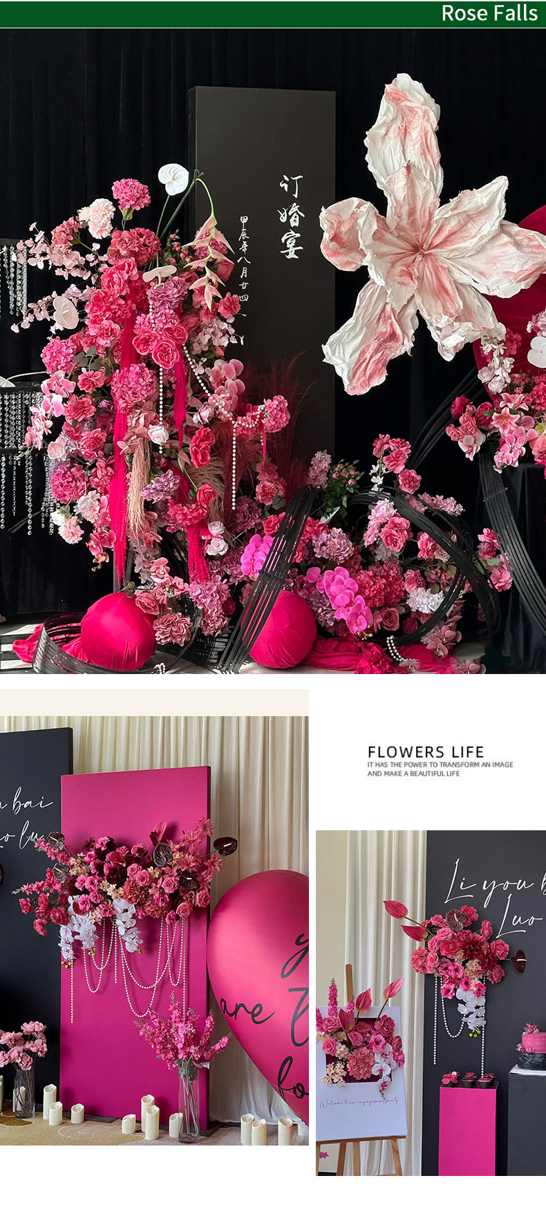 single pentagram hydrangea-rose red-gl