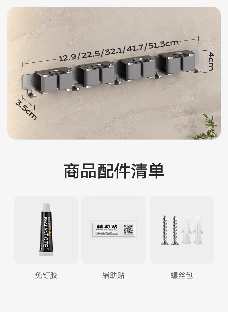 gun gray-general-purpose mop clip-3 card 4 hook