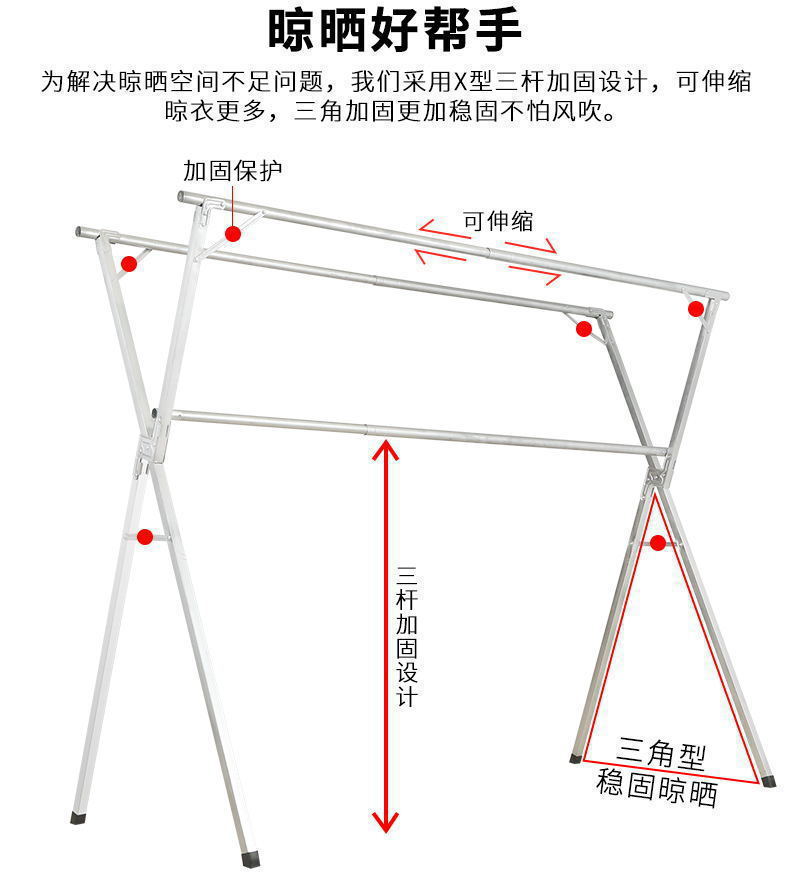 extra thick all stainless steel 2.0 telescopic three rod + wheel