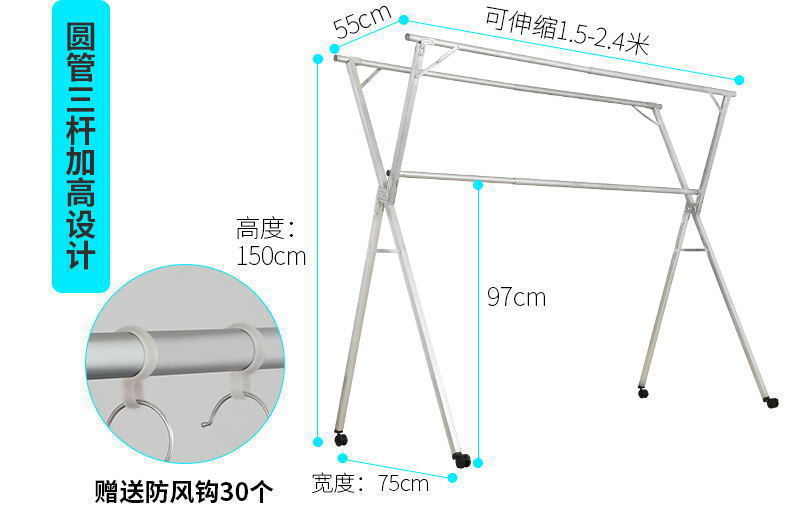 extra thick stainless steel 2.4 m telescopic double rod