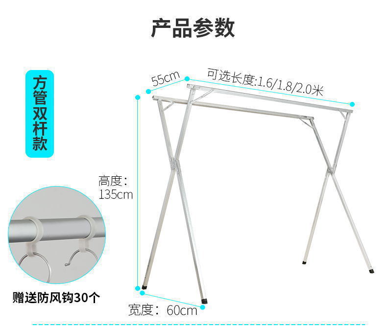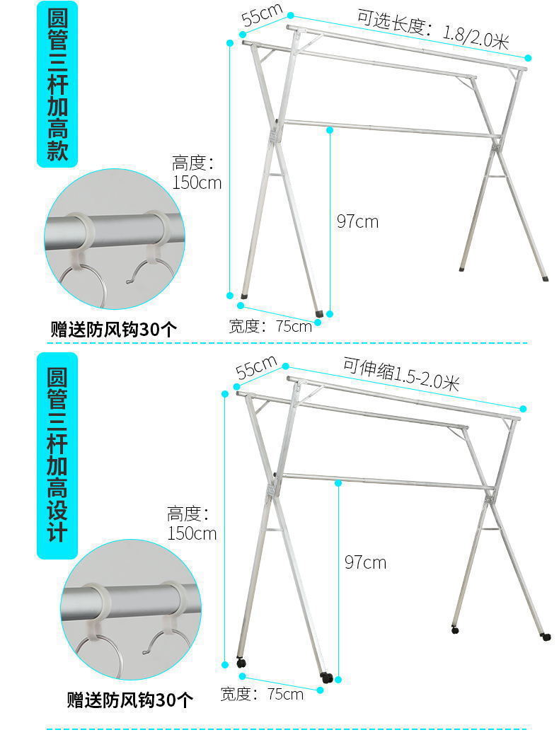 extra thick stainless steel 2.0 m telescopic double rod