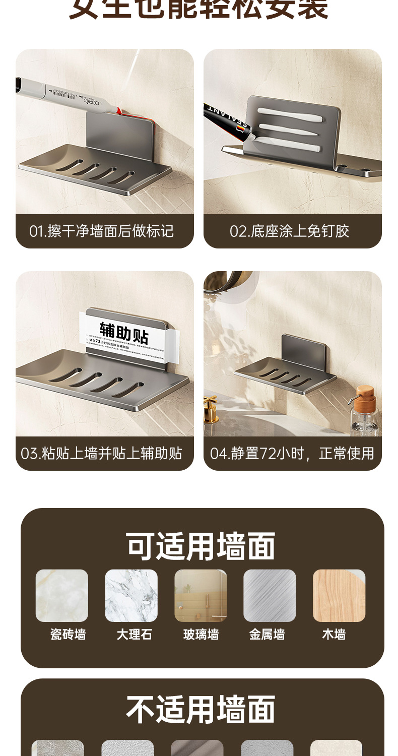 elegant black-1 pack [nail-free glue double drain]]