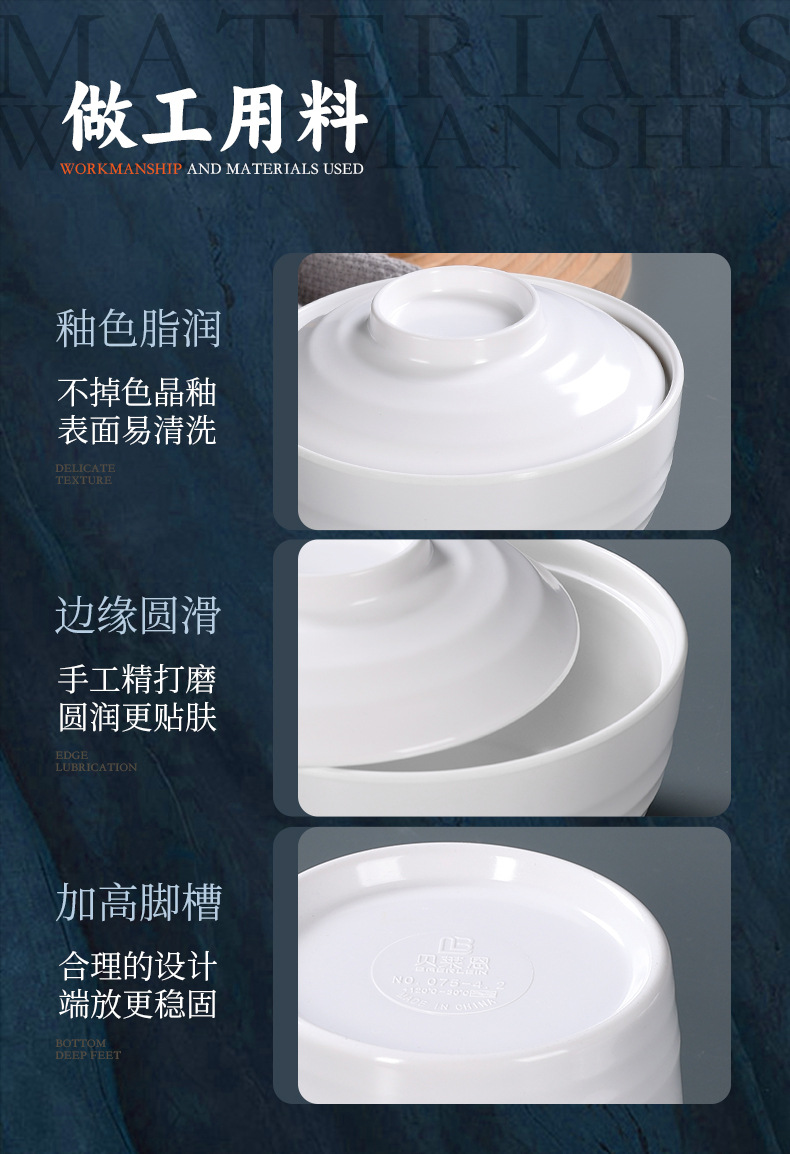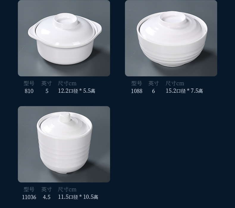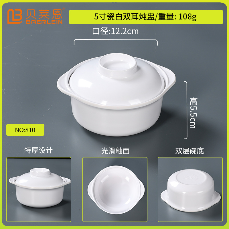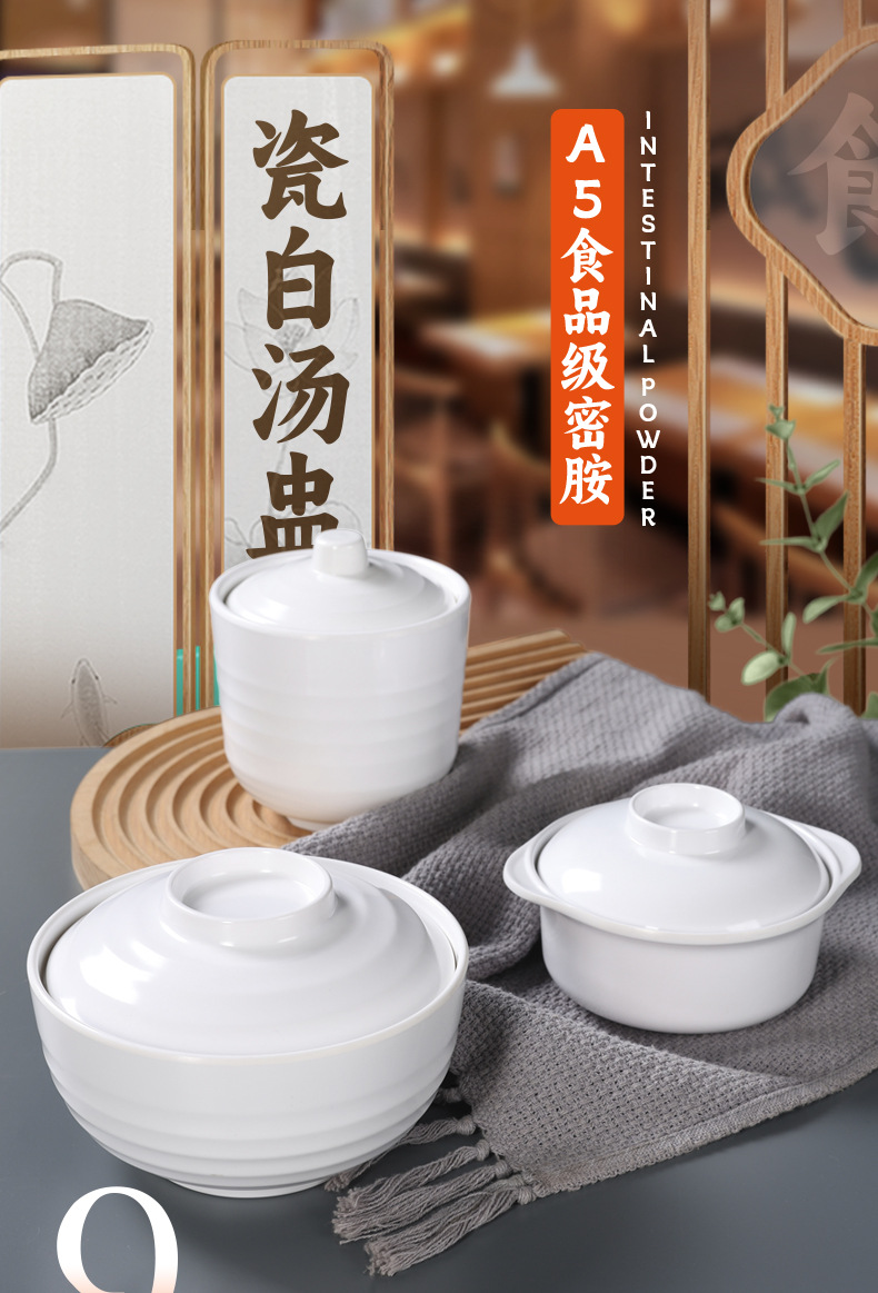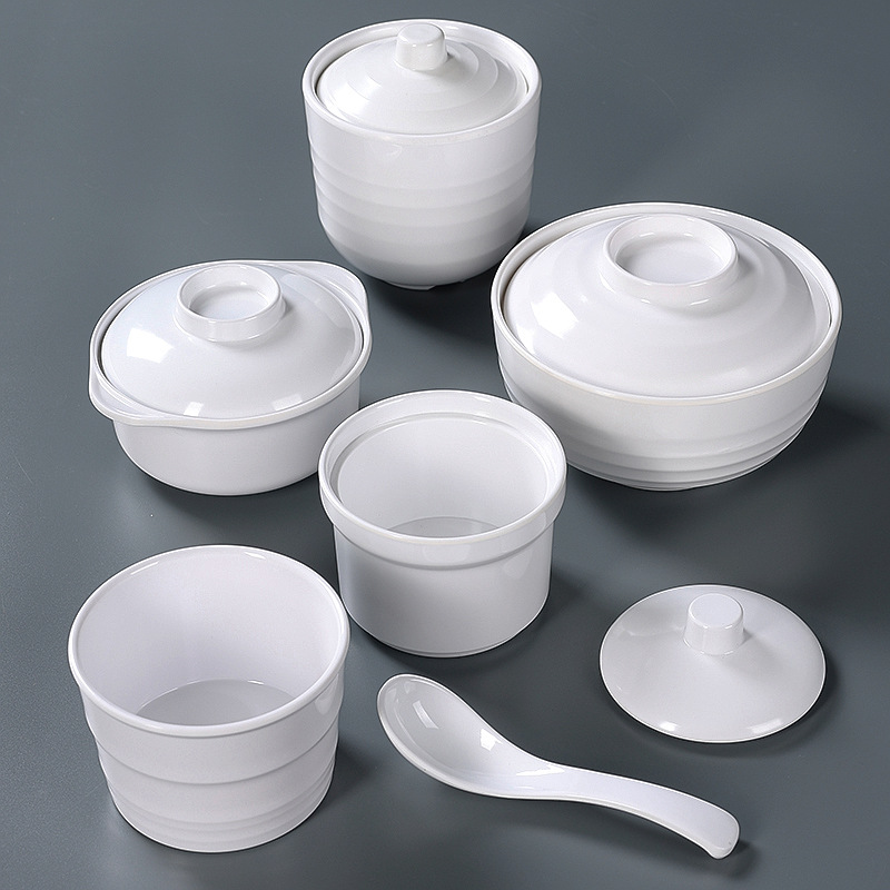 white melamine dinnerware tureen slow cooker hotel hotel shaxian special plastic water-proof soup with lid binaural tureen