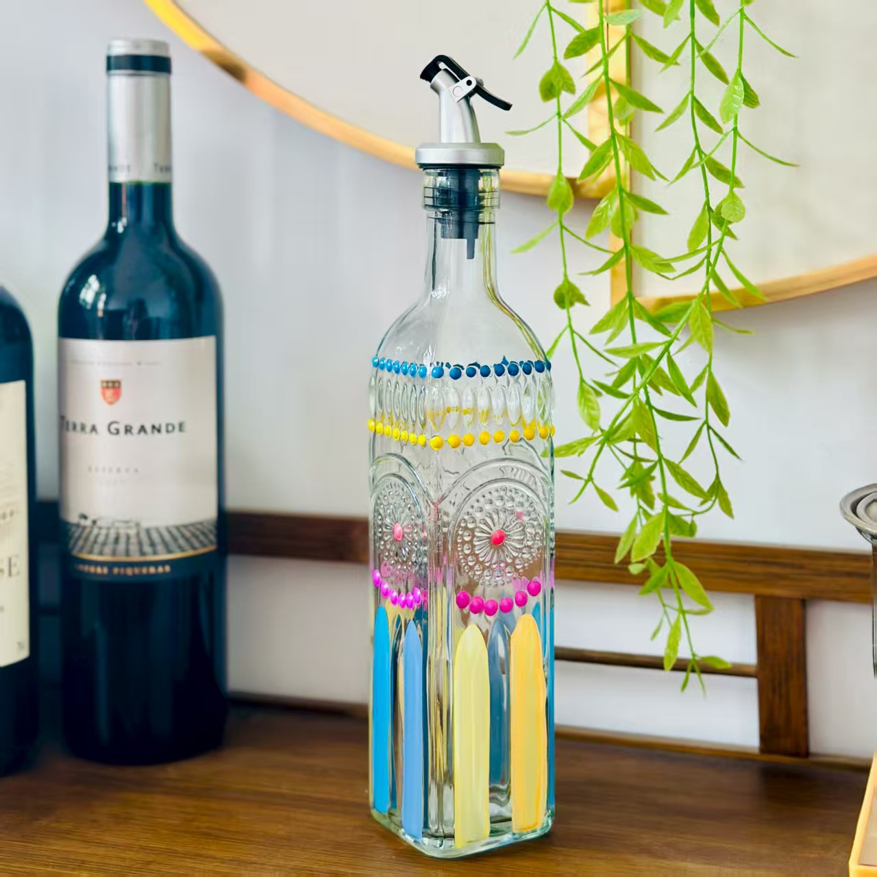 square embossed hand-painted circular dots