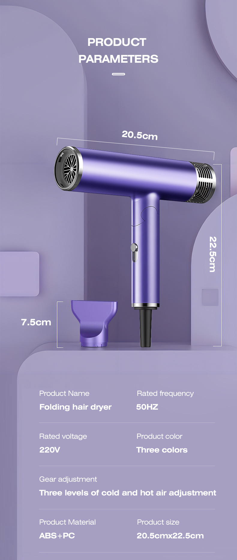 d3 folding hair dryer fumigating purple [european standard]]