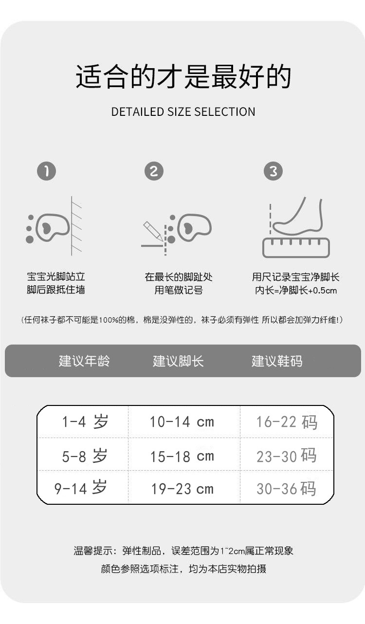 | [5-8 years old] recommended shoe size 23-size 30 | CN¥ 0.42 | 99999 pair available |
