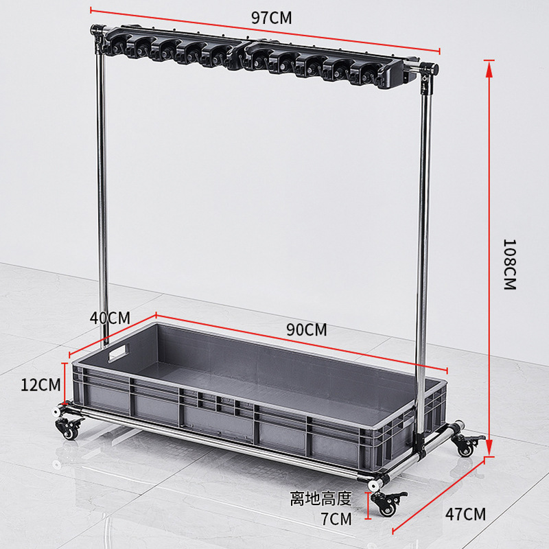 upgrade plus-sized mobile mop rack-10 drag 12 hook (bull wheel)