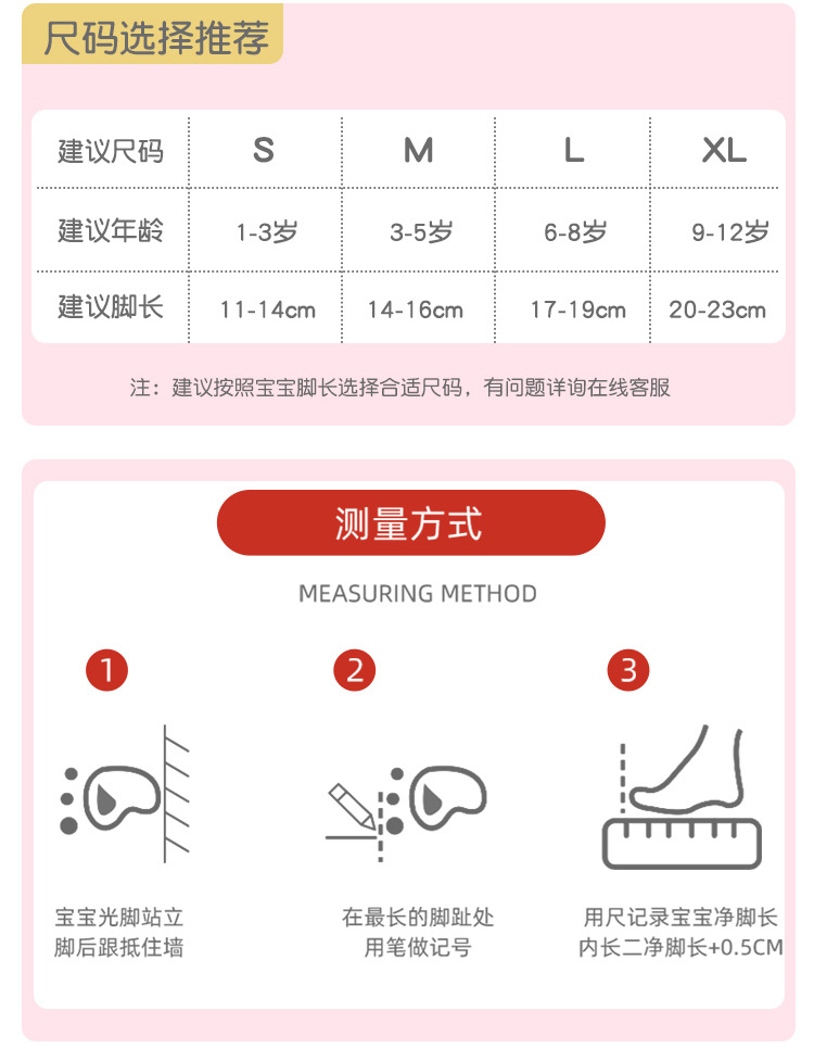 | size s 1-3 years old [recommended shoe size 21-size 24]] | CN¥ 0.0 | 207776 pair available |