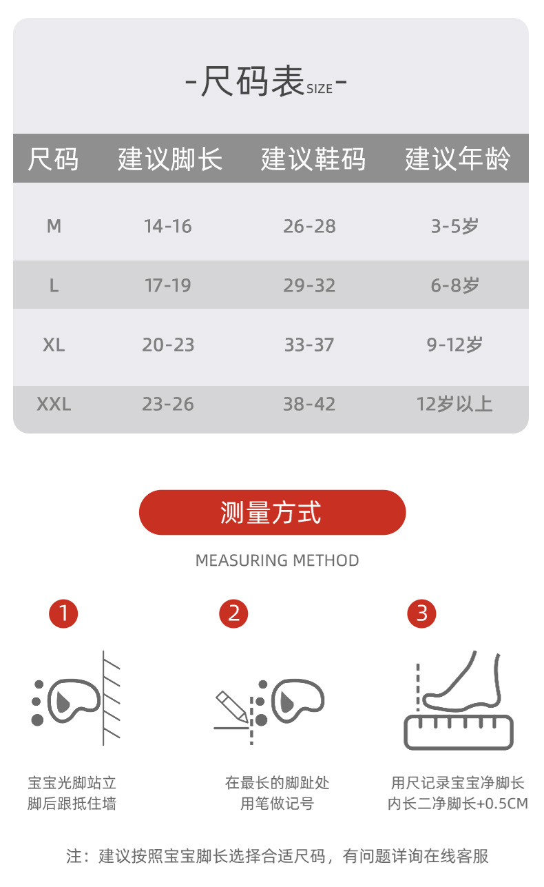 | size m 3-5 years old [recommended shoe size 25-size 28]] | CN¥ 0.0 | 362274 pair available |