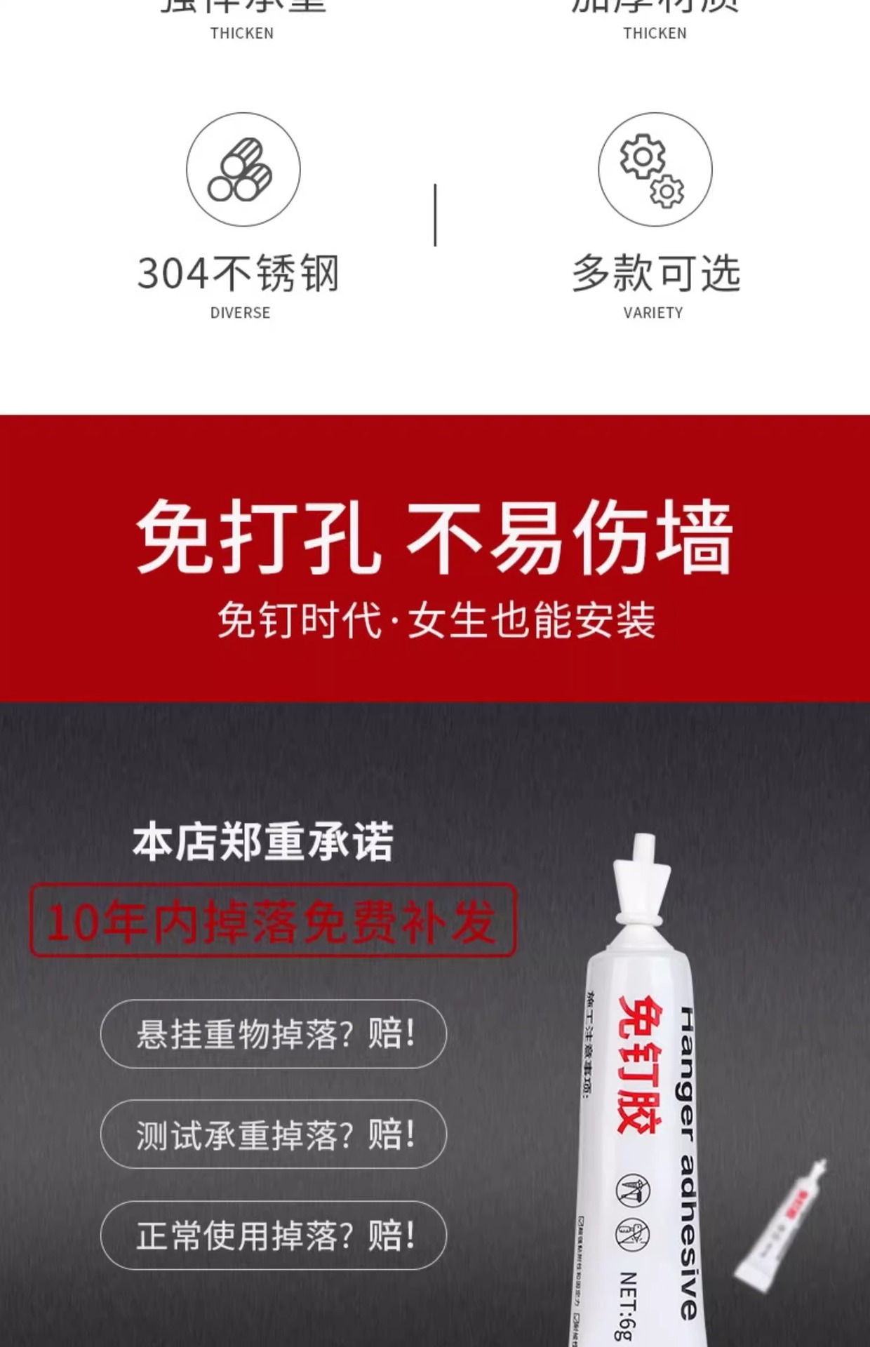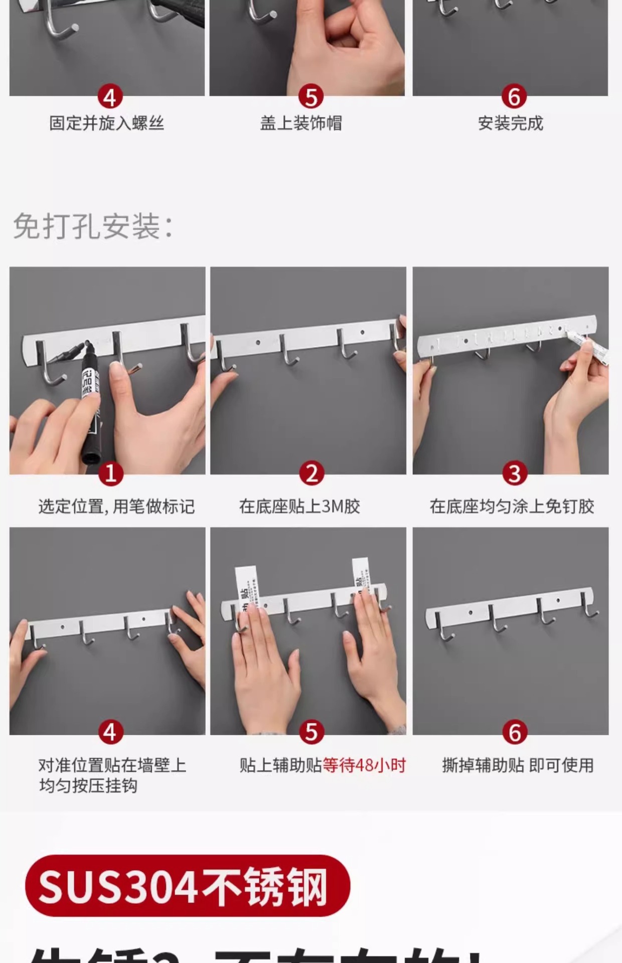 304 extra thick [6 hooks] 1 pack