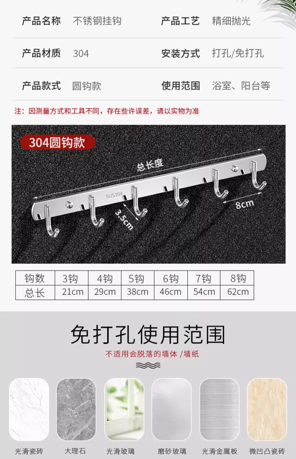 304 extra thick [7 hooks] 1 pack