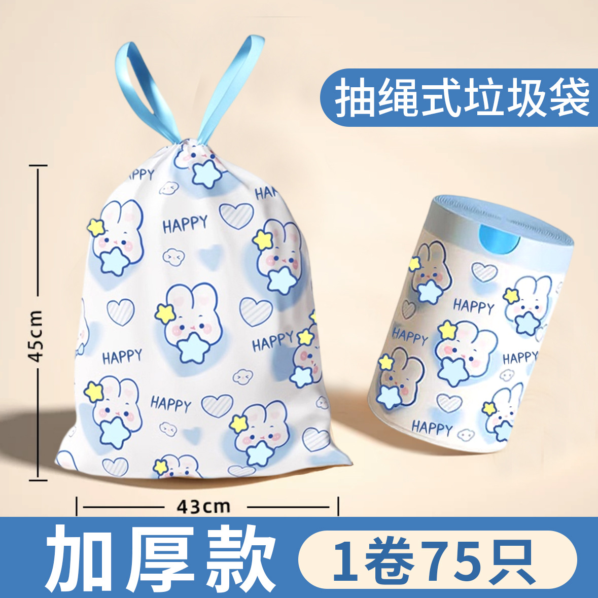 drawstring type [1 roll 75 pcs] double-sided thickening-blue rabbit