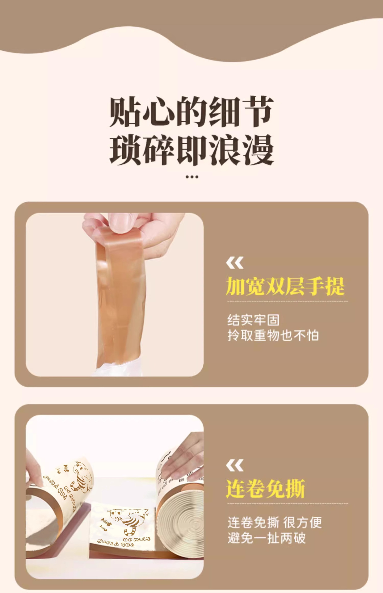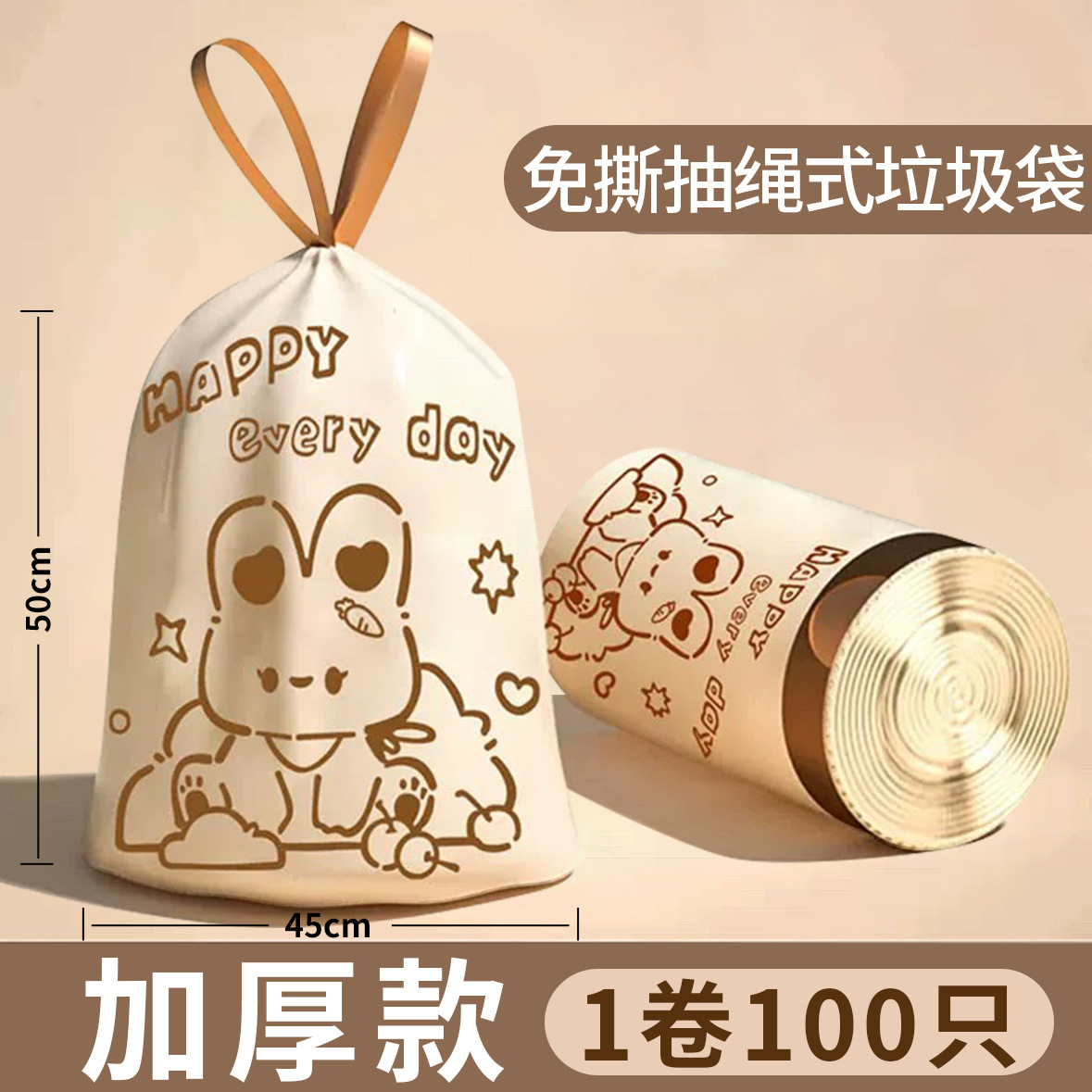 tear-free drawstring [1 roll 75 pcs] double-sided thickening-sitting rabbit