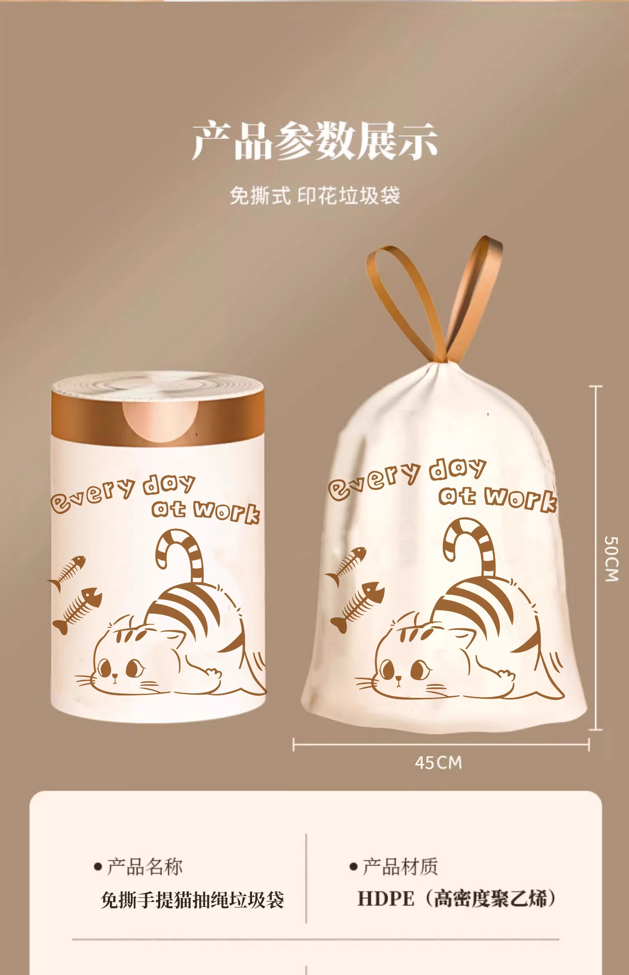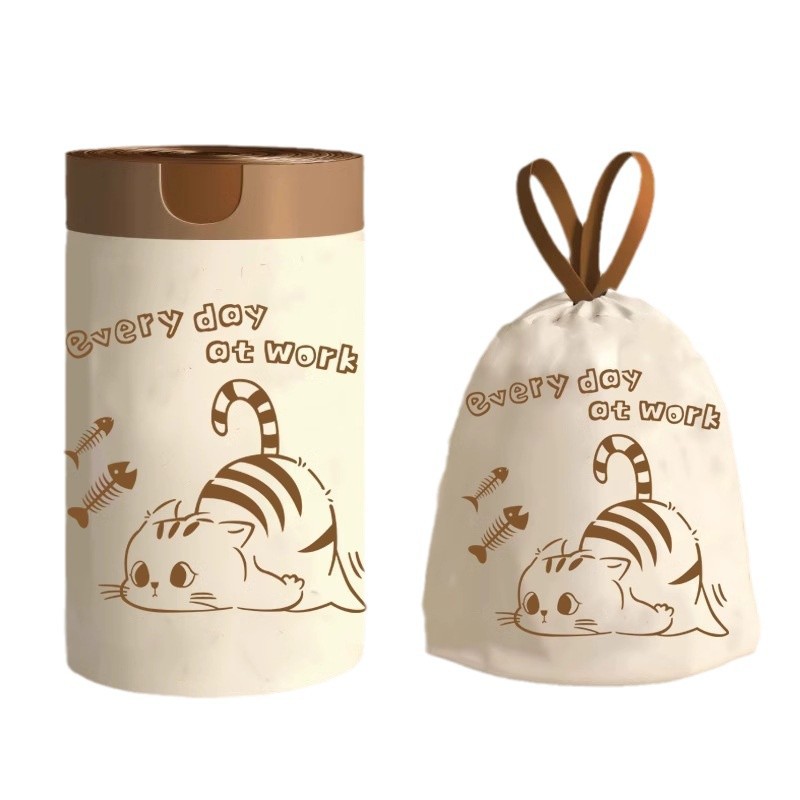 tear-free drawstring type [1 roll 75 pcs] double-sided thickening-work cat