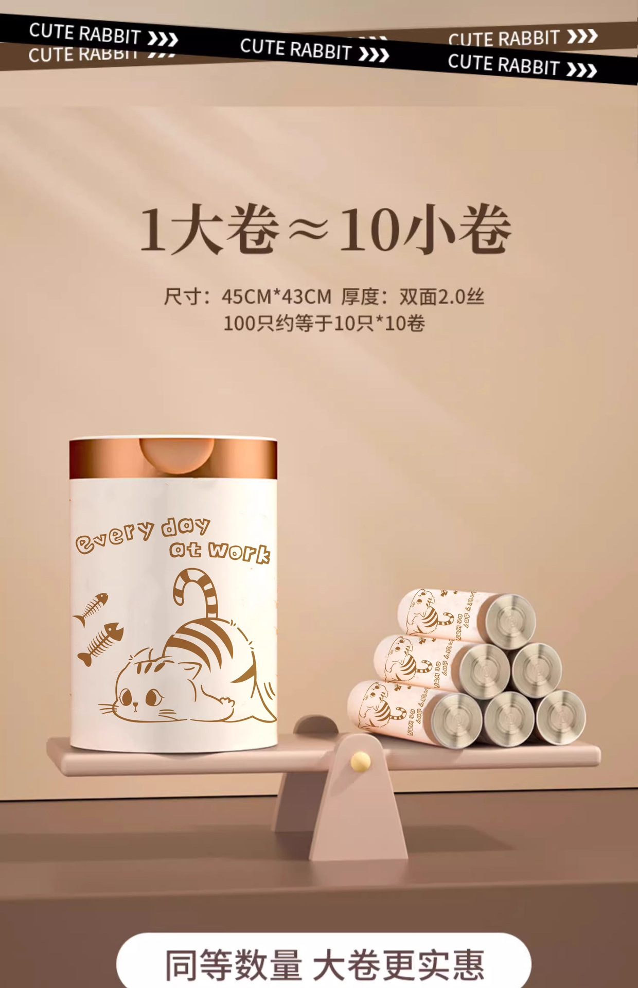 tear-free drawstring [1 roll 100 pcs] double-sided thickening-sitting rabbit