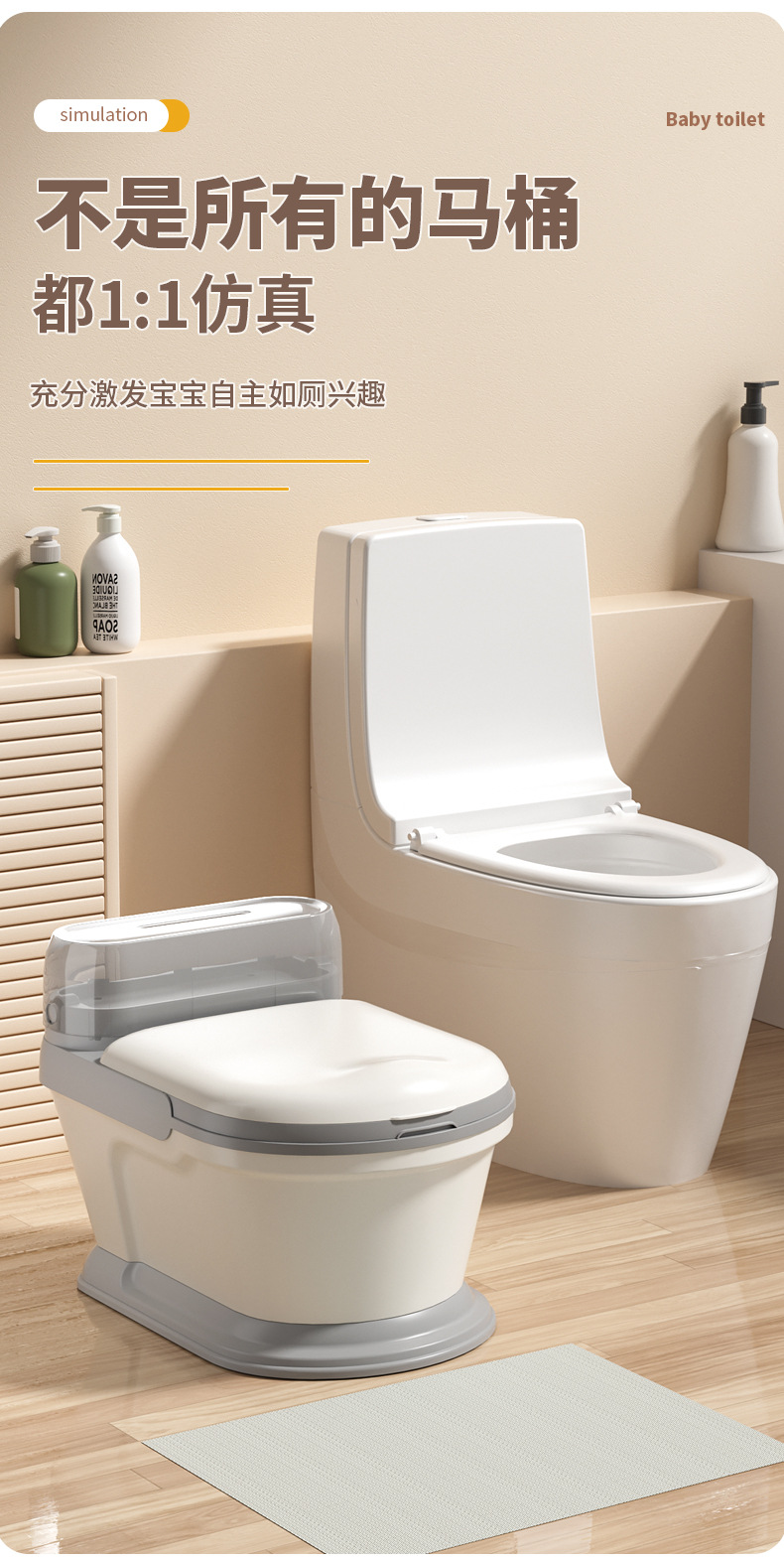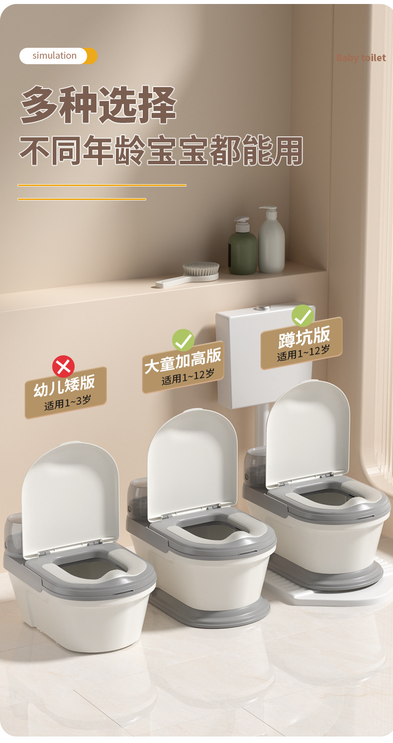 [applicable for 1-12 years old] pu style-amber gray (free toilet brush)