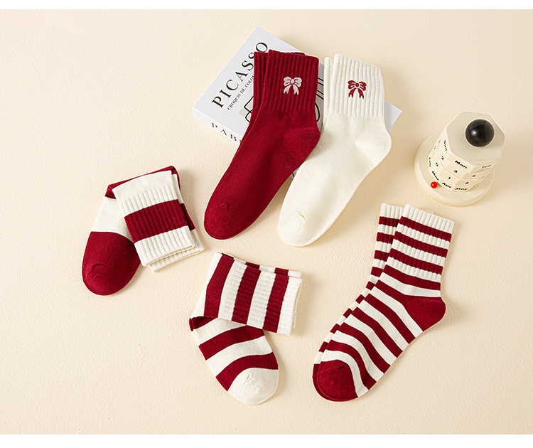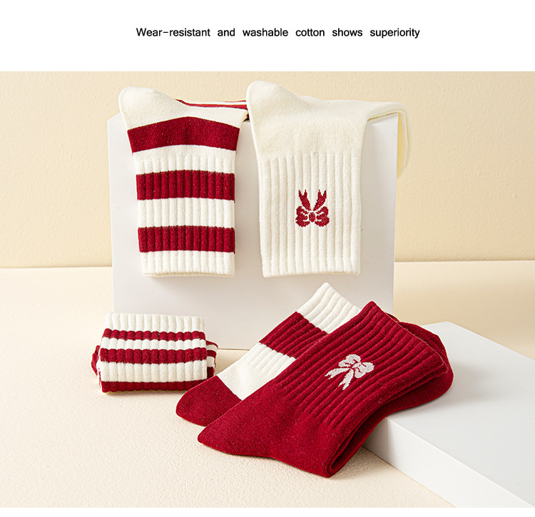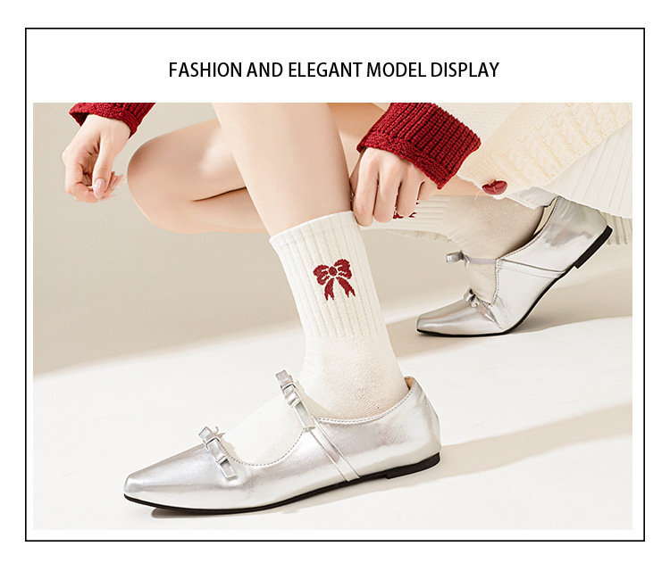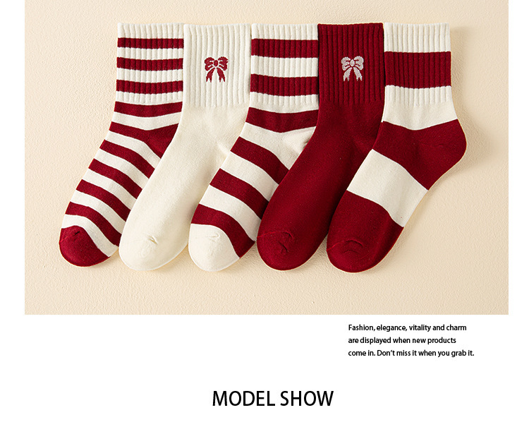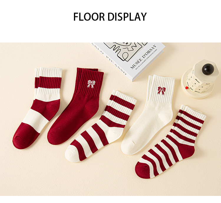 ankela red bow ~ women's mid tube stockings