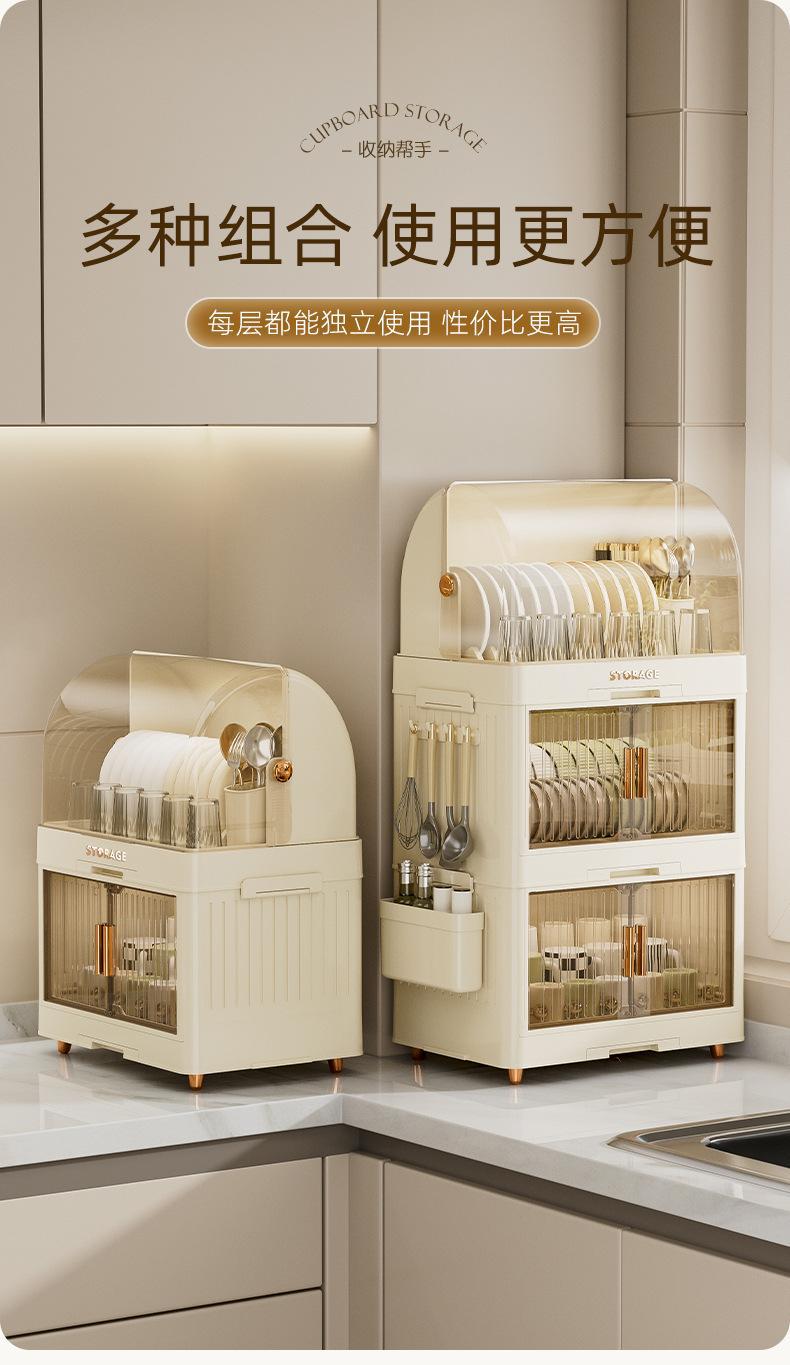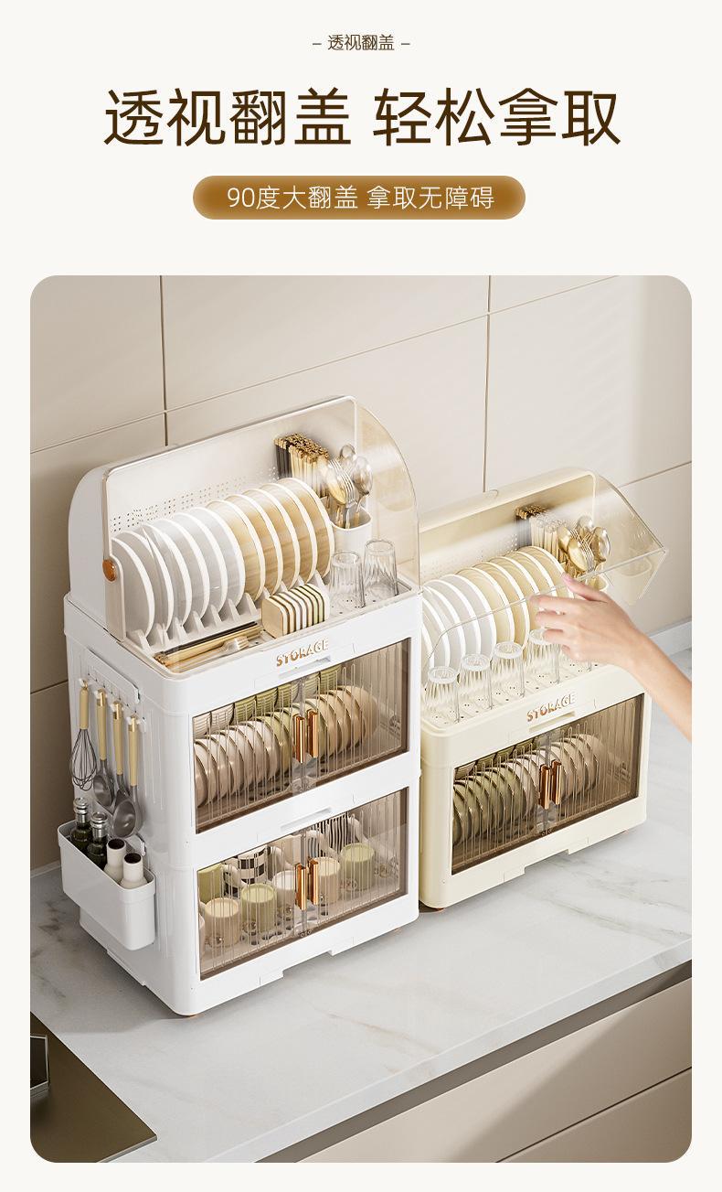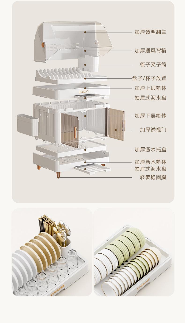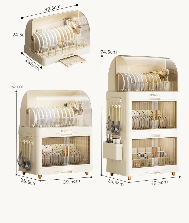 cream color flat lid tableware rack 2 layers