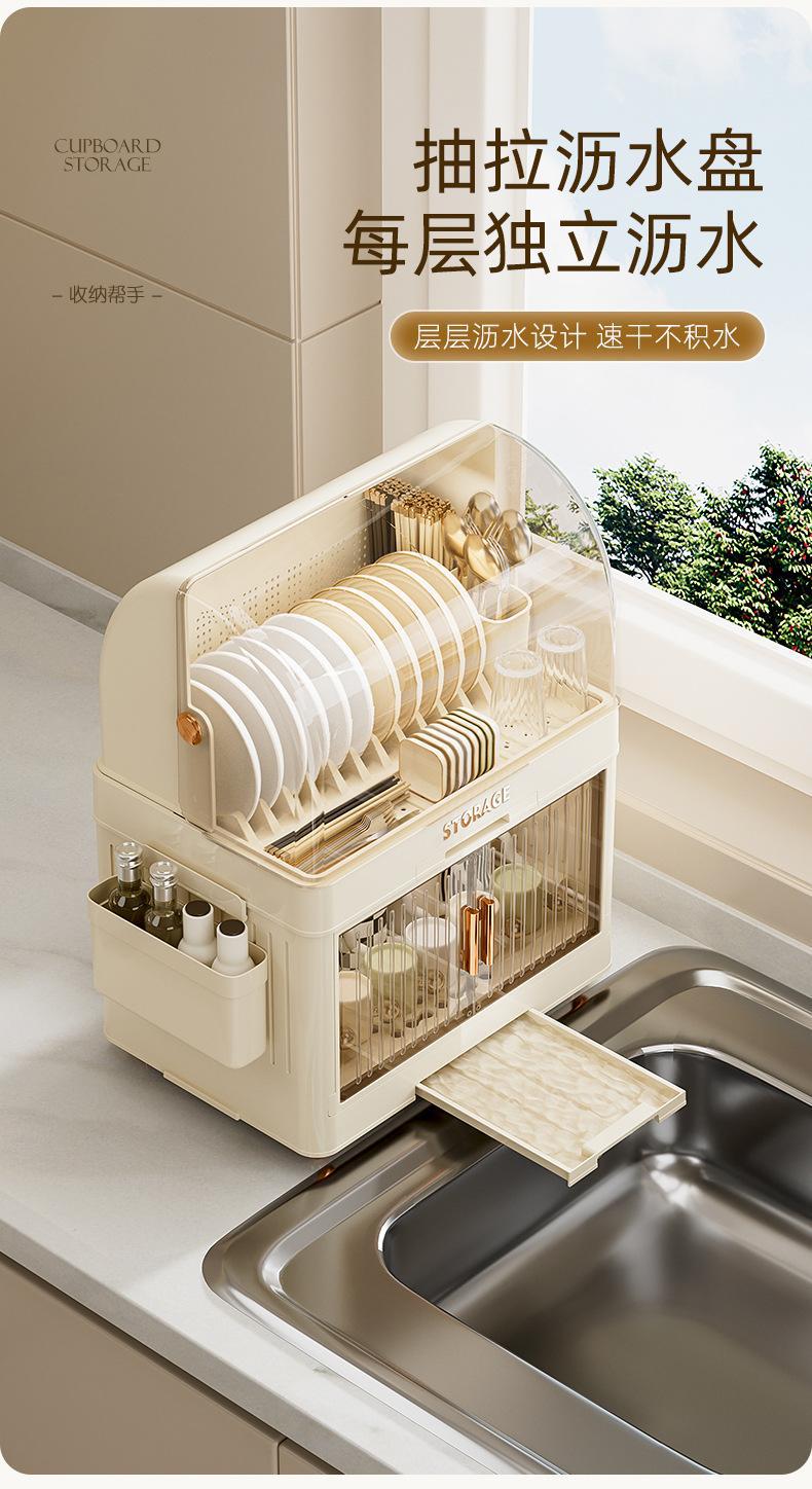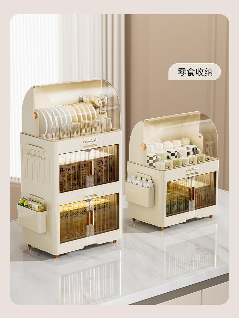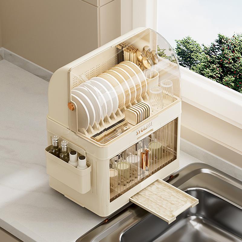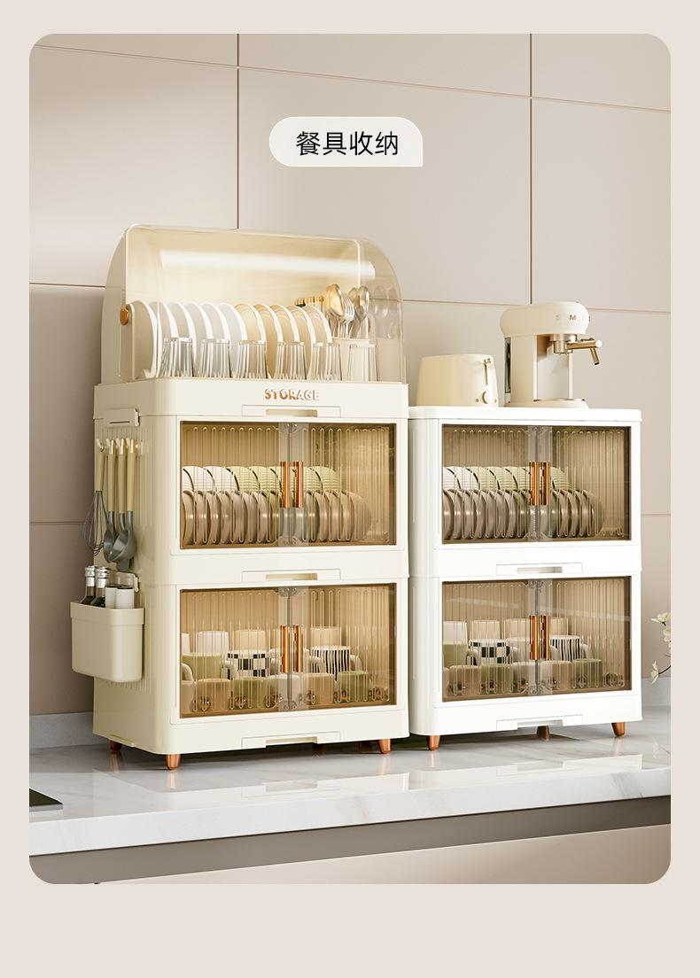 cream color flat lid tableware rack 2 layers