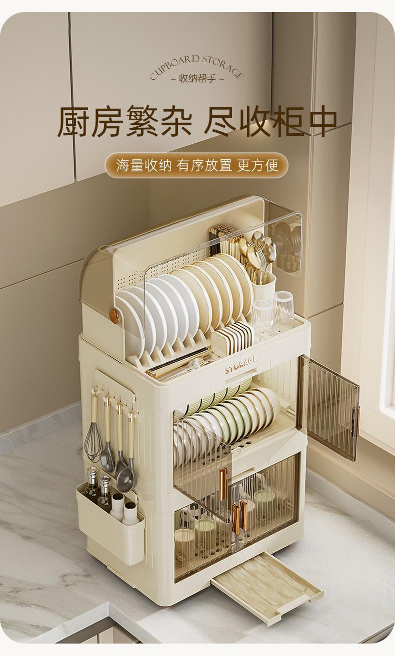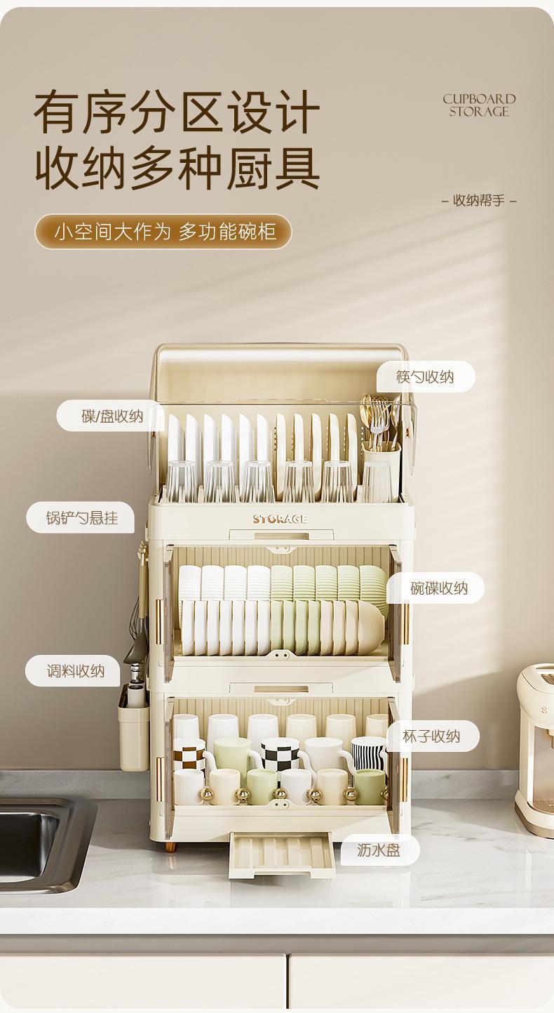 cream color flat lid tableware rack 3 layers