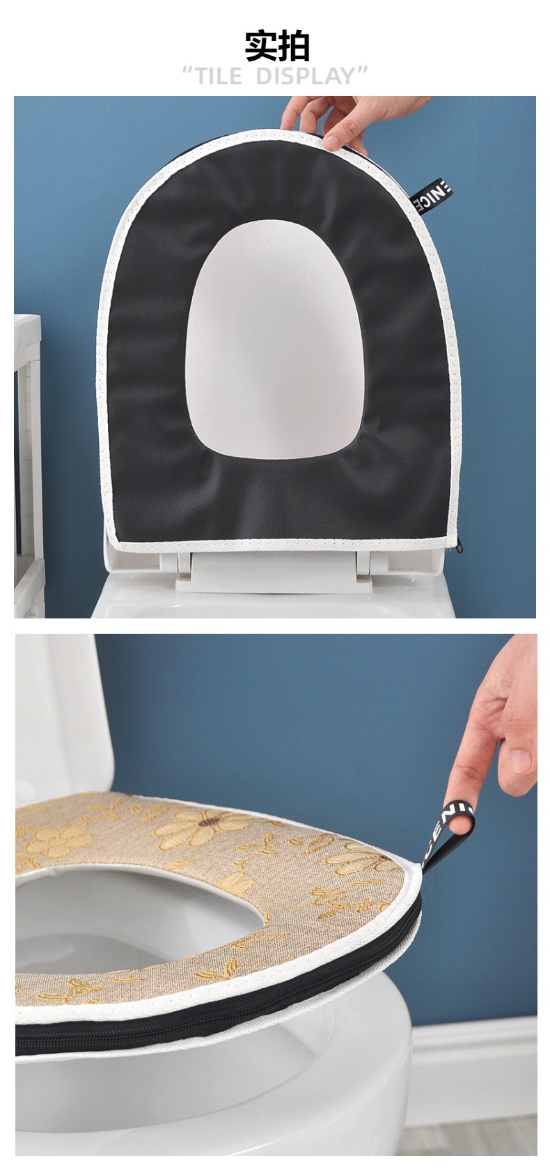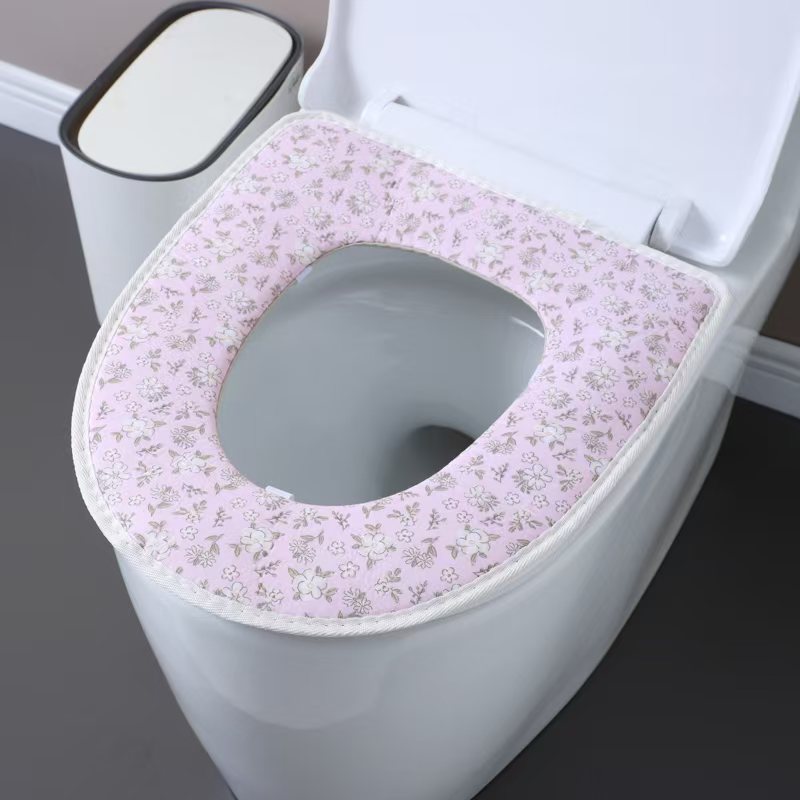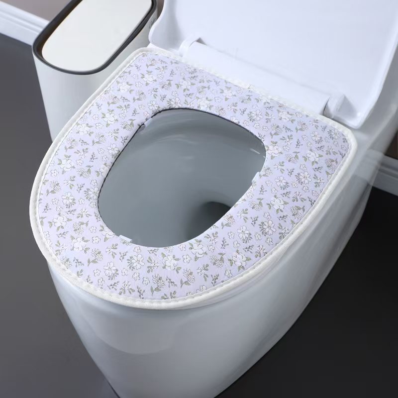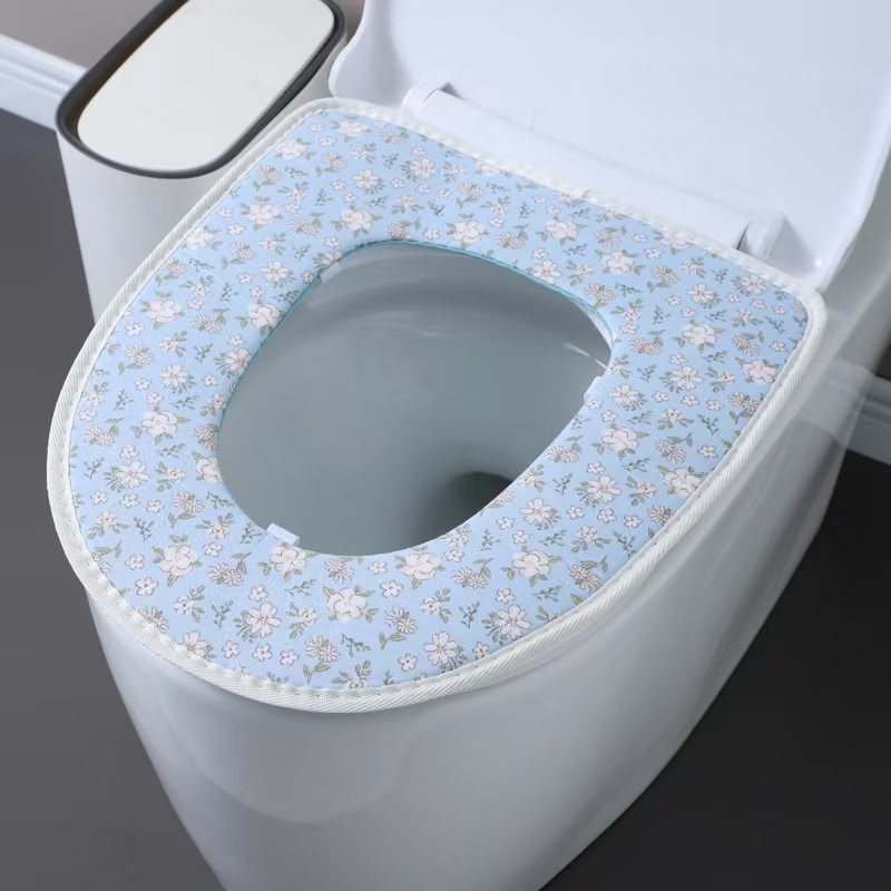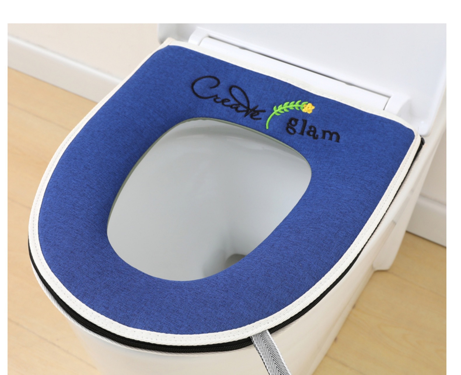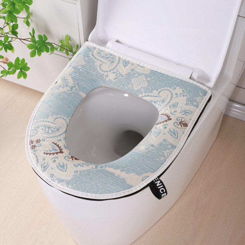 blue linen zipper toilet mat