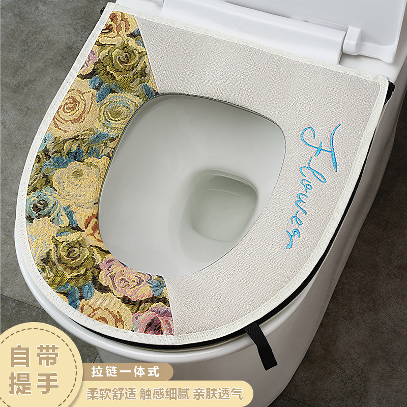khaki linen zipper toilet mat