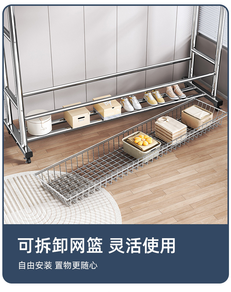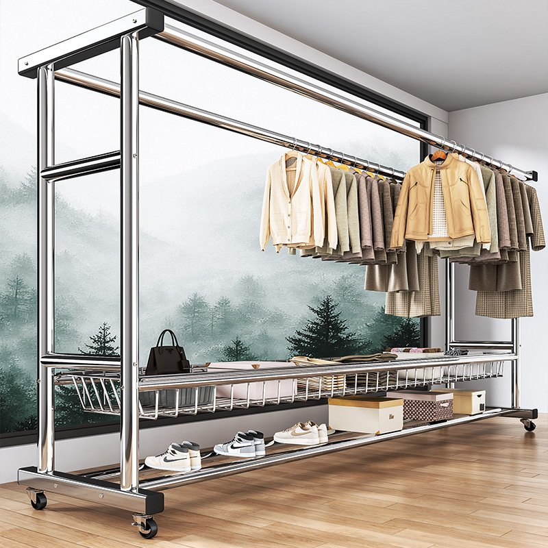 bold stainless steel 120cm double rod-double-layer mesh frame + universal wheel
