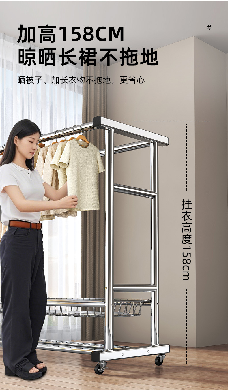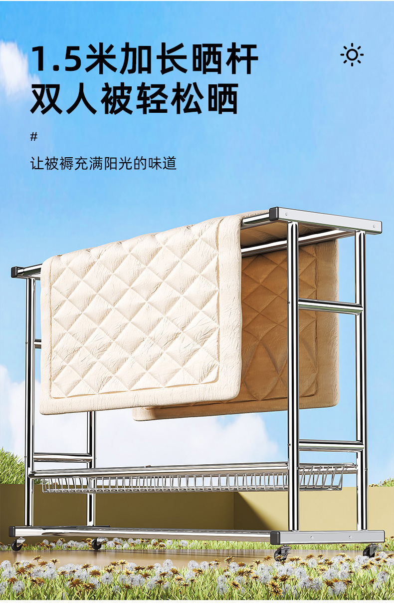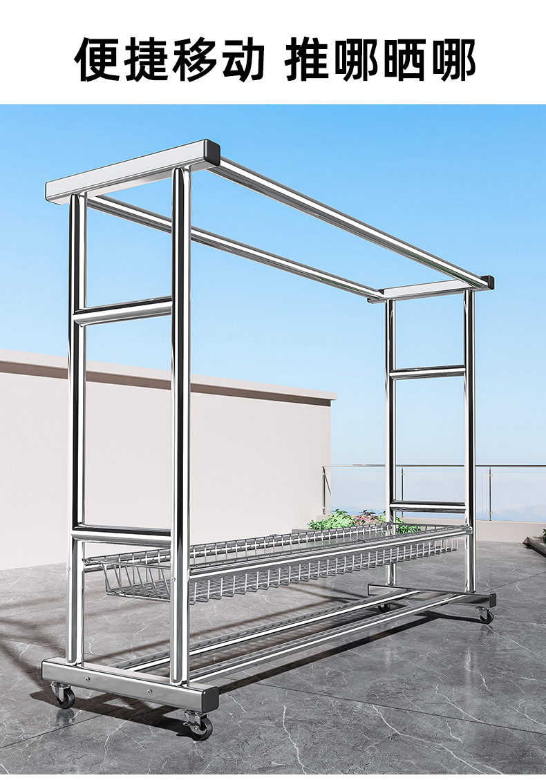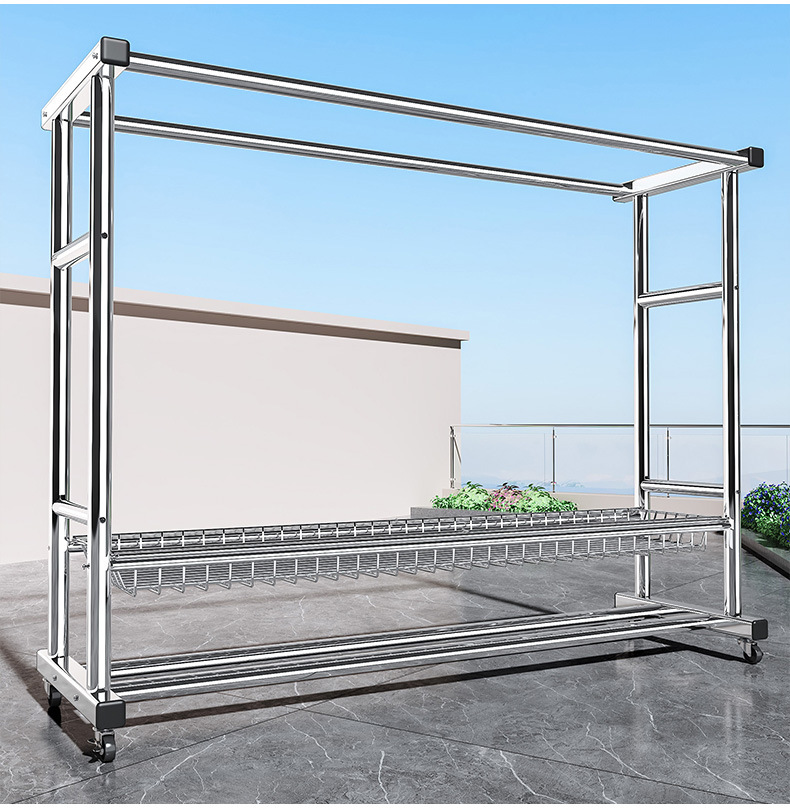 bold stainless steel 150cm double rod-double-layer mesh frame + universal wheel