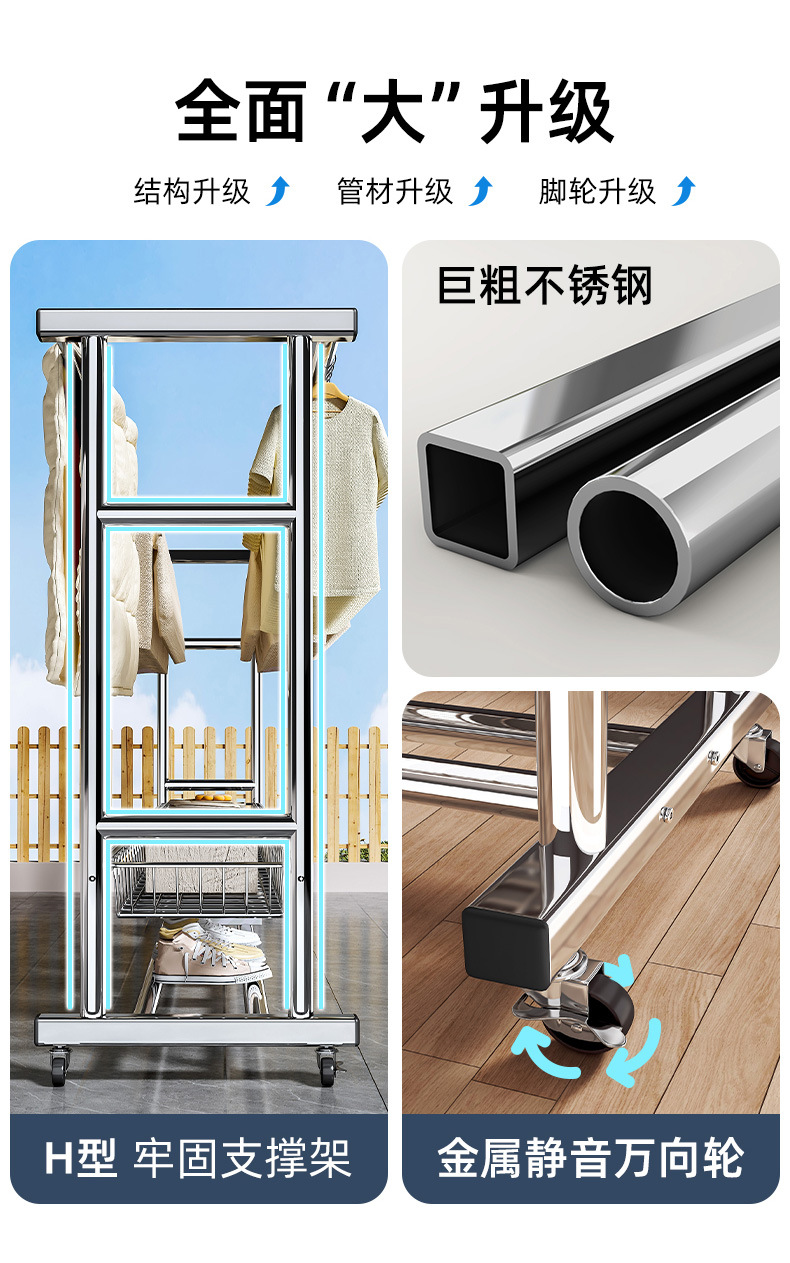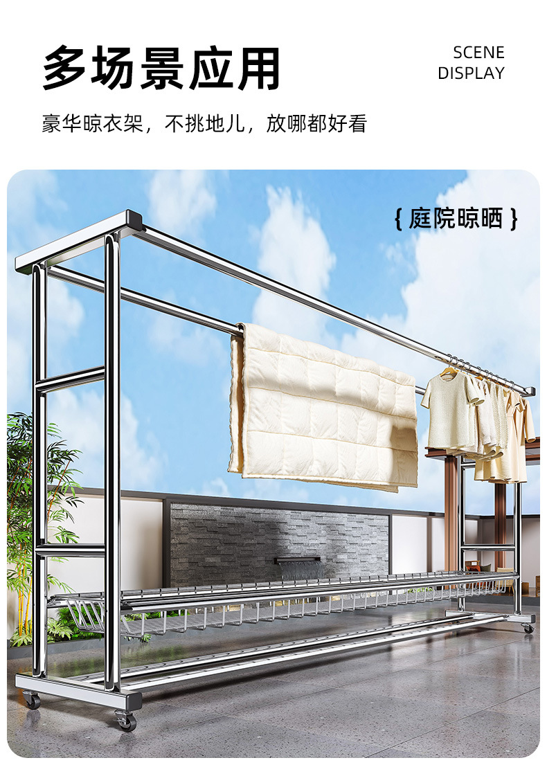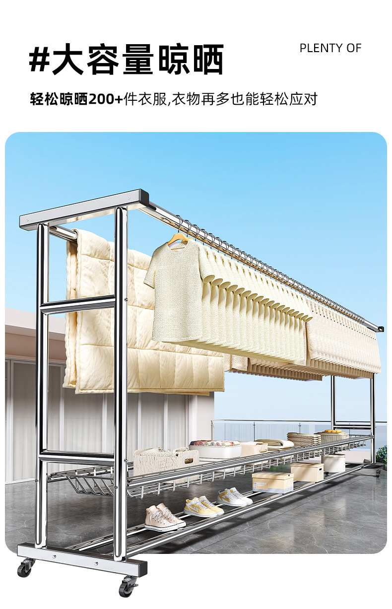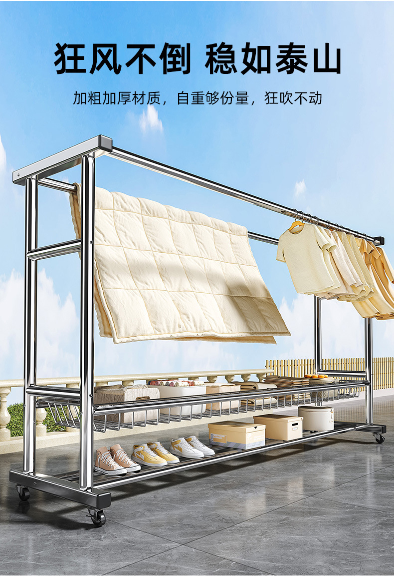 bold stainless steel 150cm double rod-double-layer mesh frame + universal wheel