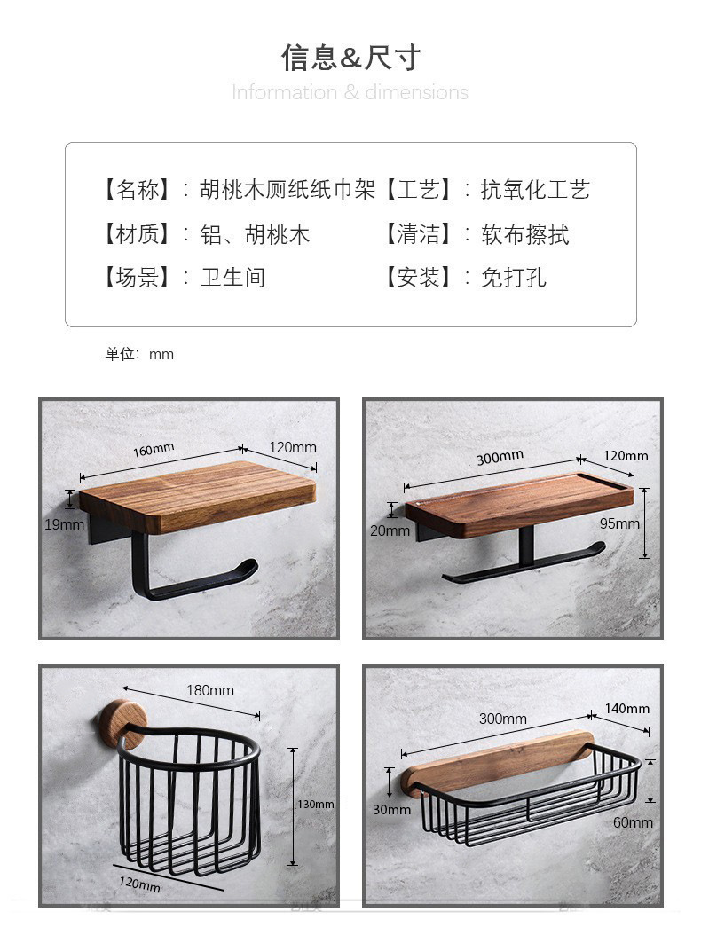 punch-free walnut black single toilet paper pulling holder [type b]]