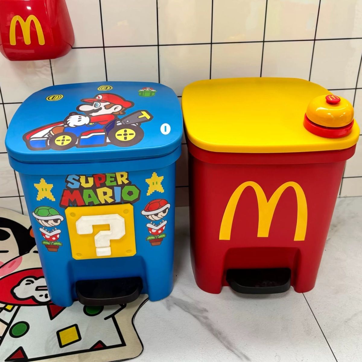 yellow cover-red trash can [11l] + mcdonald's sticker + bell