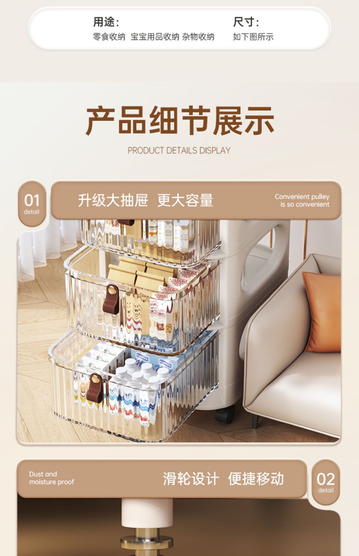 transparent white [thickened base] upgraded large two drawers & trolley