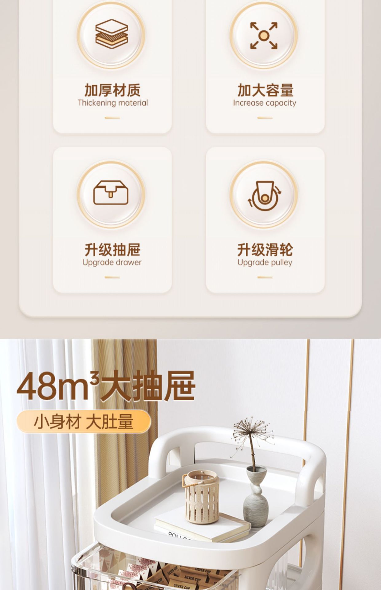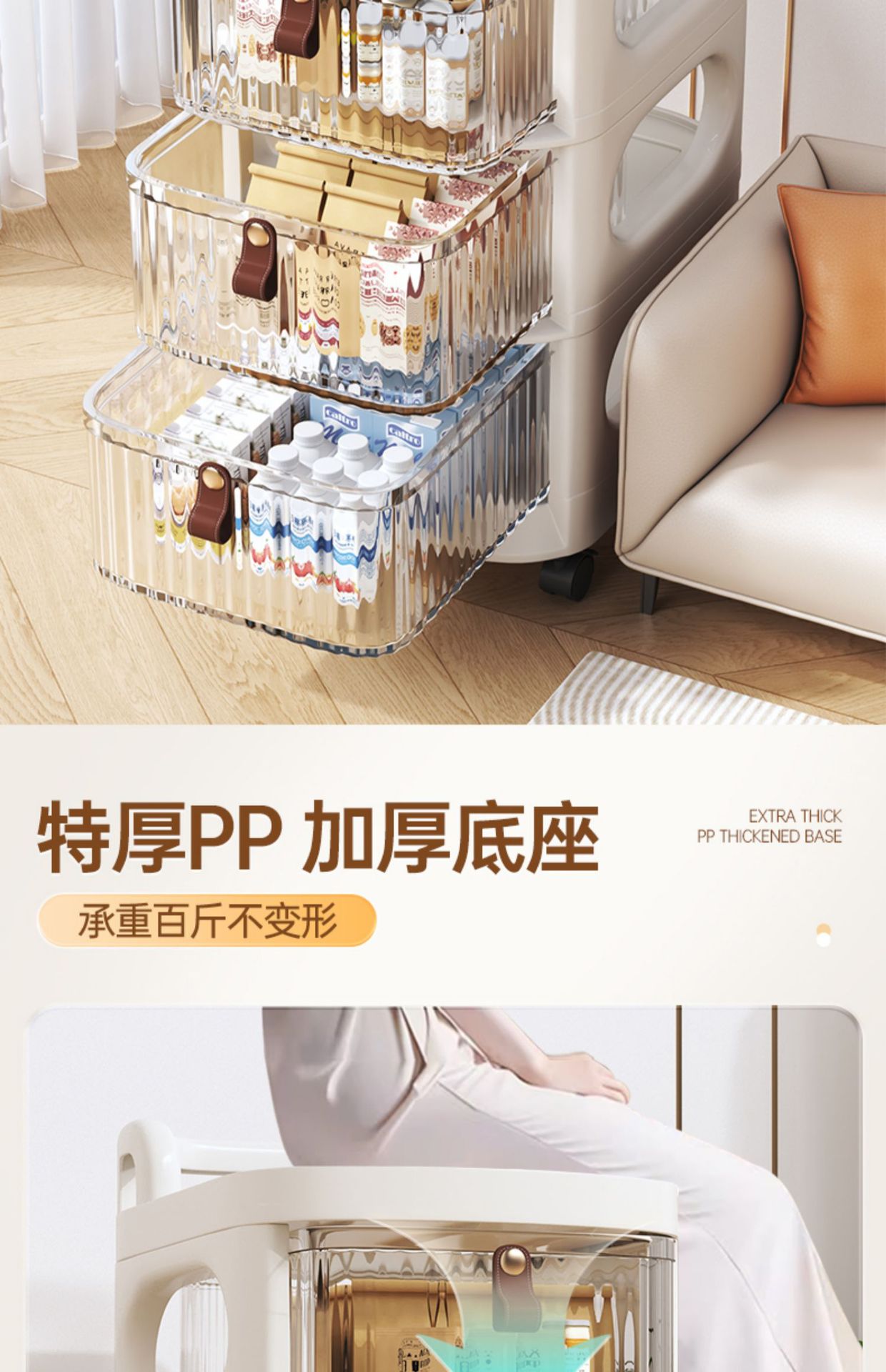transparent white [thickened base] upgraded big four drawers & trolley