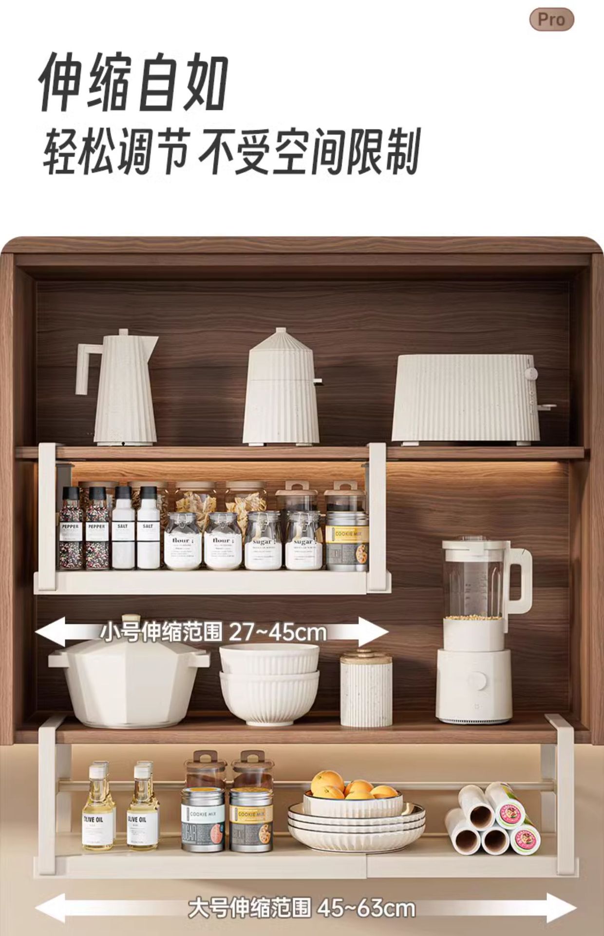 stainless steel + milk white retractable model] 22cm wide x46-63cm retractable