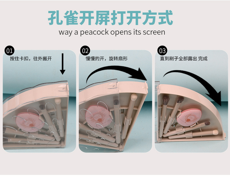 peacock open screen 10-in-1 brush suit-gradient pink + opp (fuel injection upgrade)