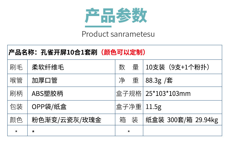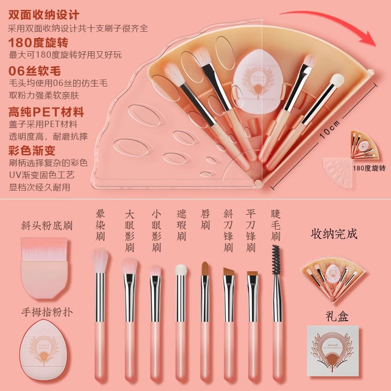 peacock open screen 10-in-1 brush suit-gradient pink + opp/color box packaging (fuel injection upgrade)