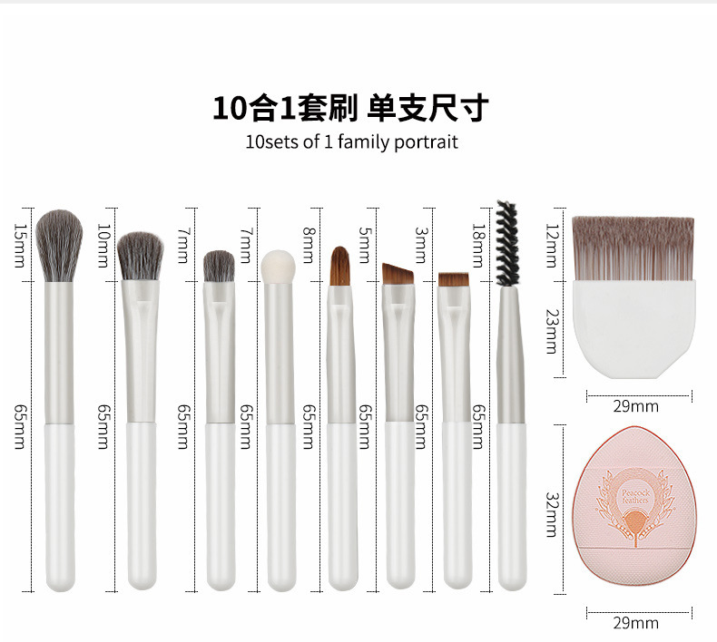 peacock open screen 10-in-1 brush suit-cloud porcelain gray + opp/color box packaging (material basic style)