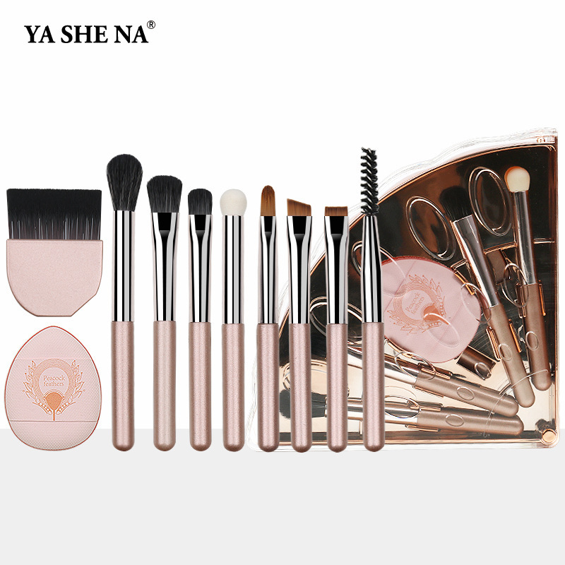 peacock open screen 10-in-1 brush suit-rose gold + opp/color box packaging (electroplating upgrade)