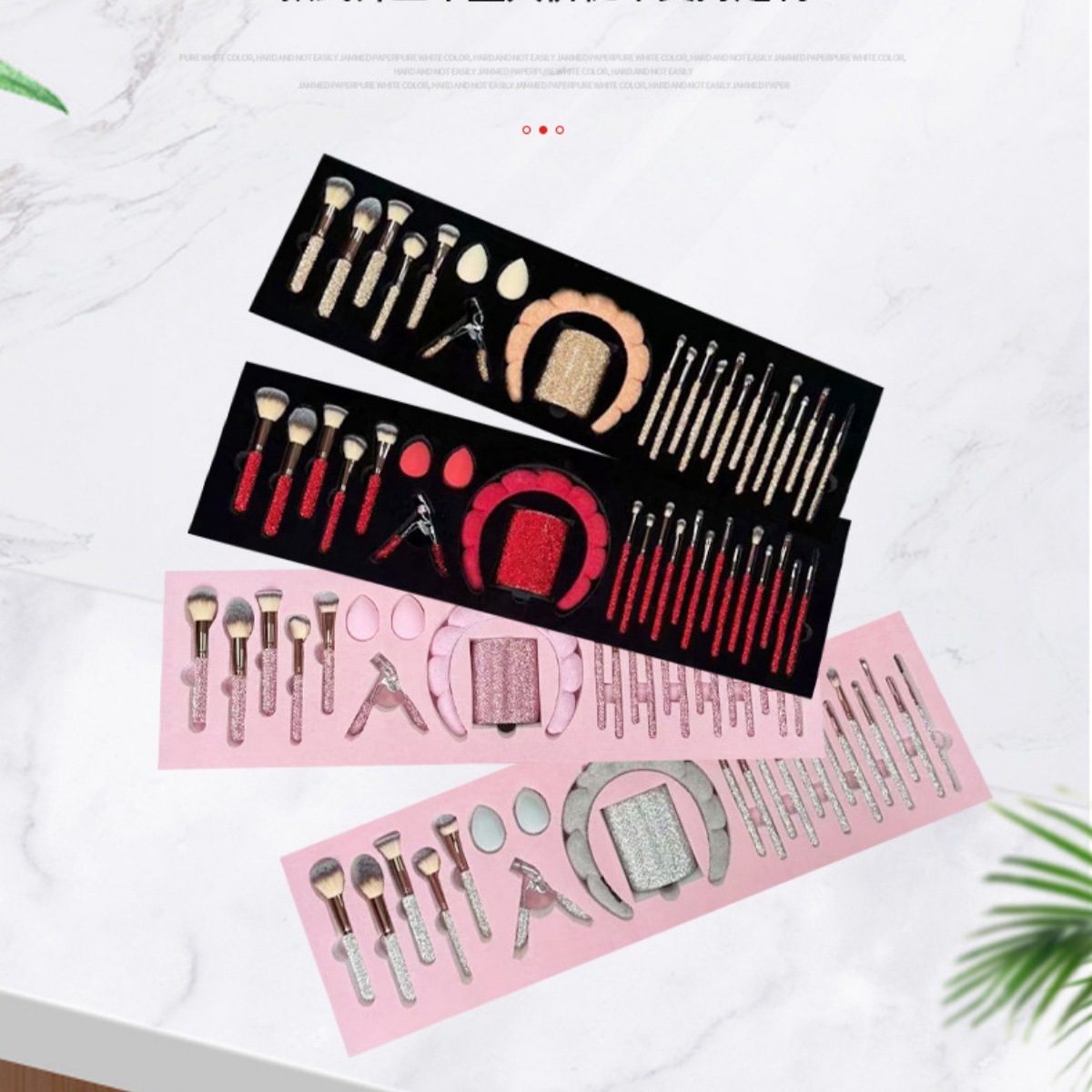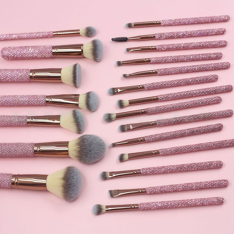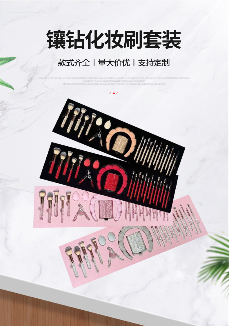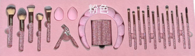 pink brush suit + diamond brush bucket + diamond eyelash curler + headband + water drop powder puff * 2 + combination set