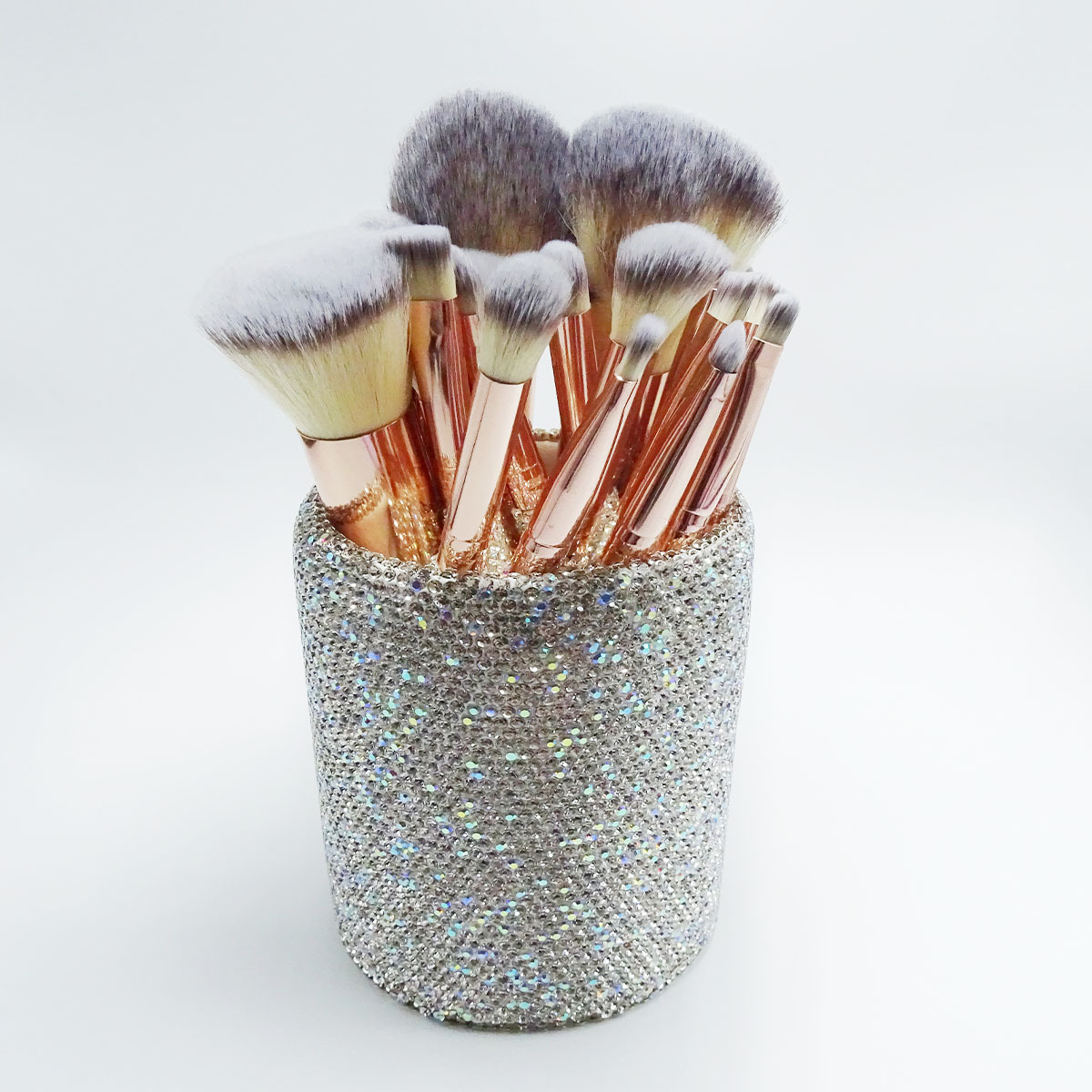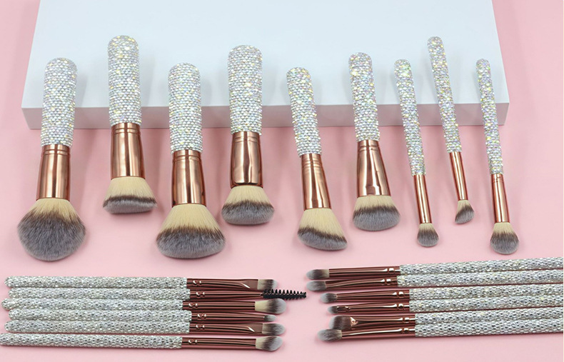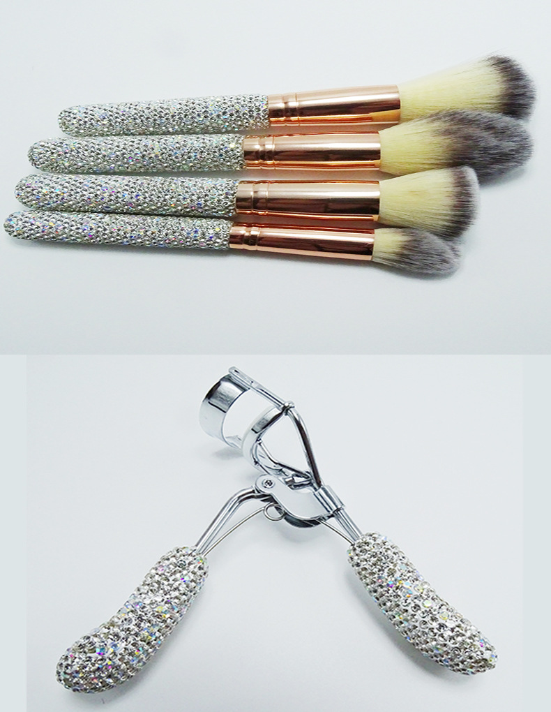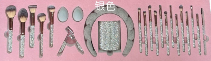 silver brush suit + diamond brush bucket + diamond eyelash curler + headband + water drop powder puff * 2 + combination set