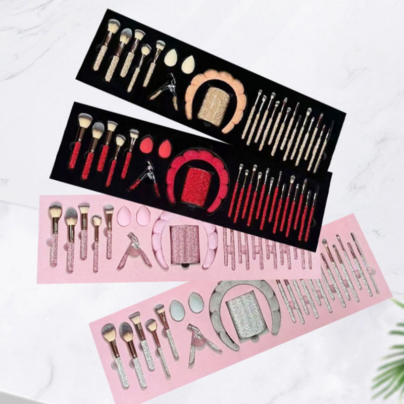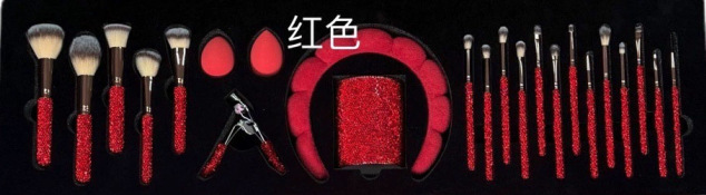 red brush suit + diamond brush bucket + diamond eyelash curler + headband + water drop powder puff * 2 + combination set