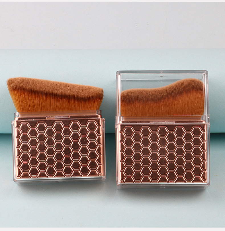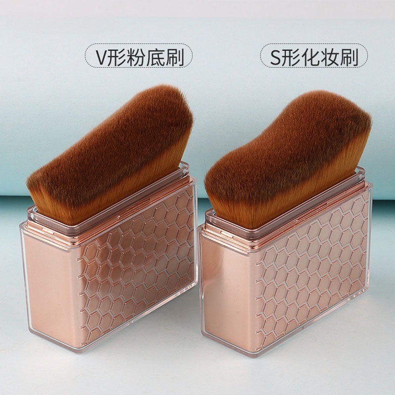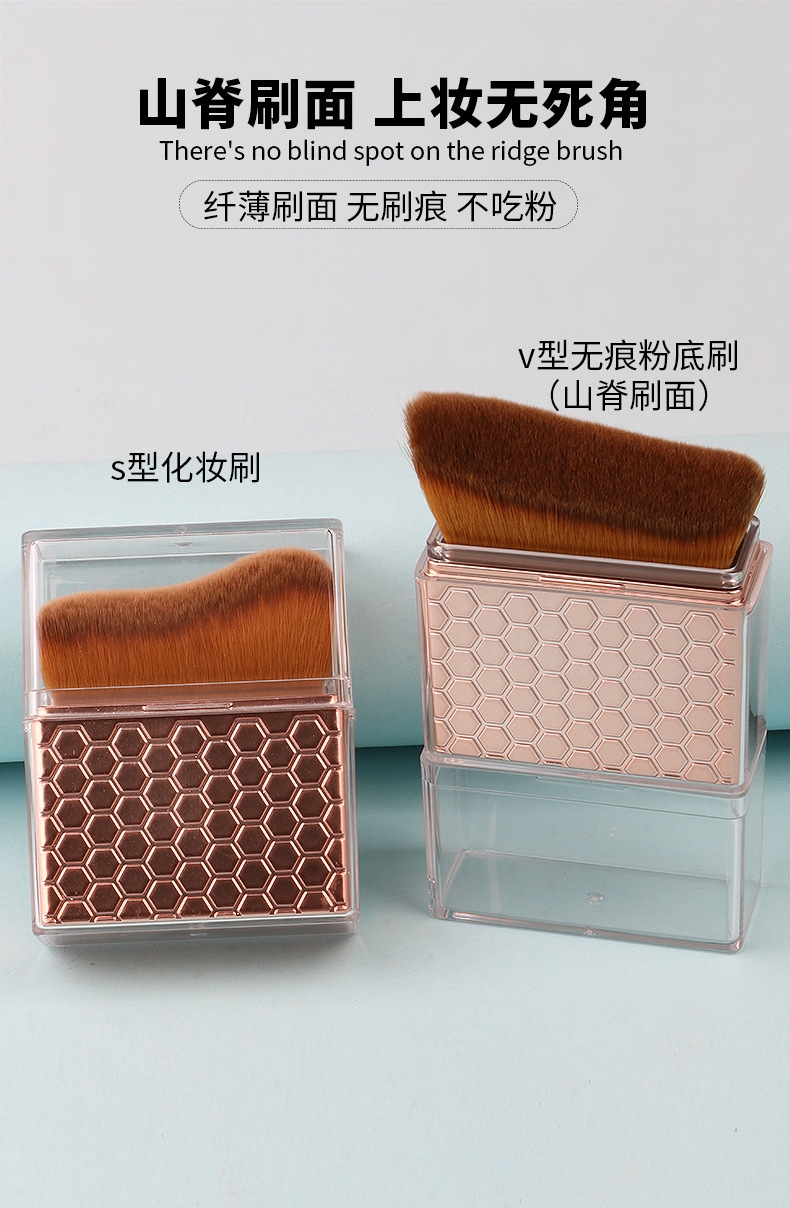 rose gold-oblique v-shaped powder foundation brush + 0pp/color box packaging