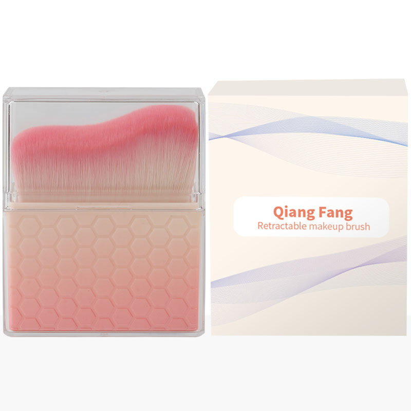 pink gradient-oblique v-shaped powder foundation brush + opp/color box packaging