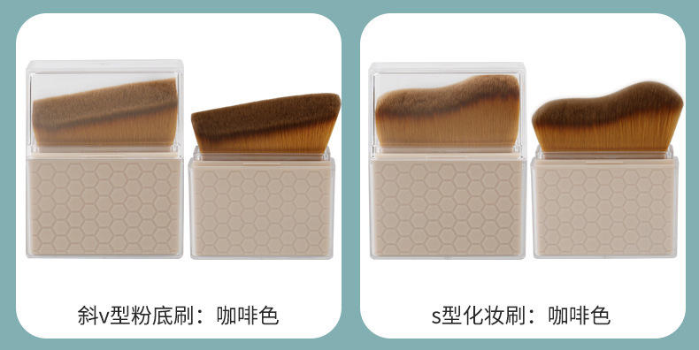 brown-oblique v-shaped powder foundation brush + 0pp/color box packaging