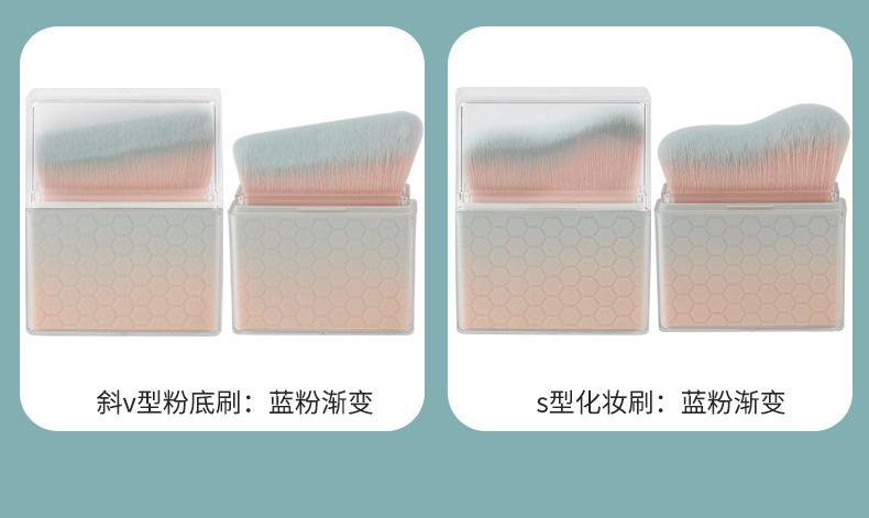 blue pink gradient-oblique v-shaped powder foundation brush + opp/color box packaging