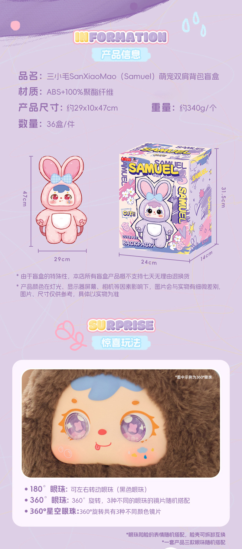 samuel cute pet backpack random one