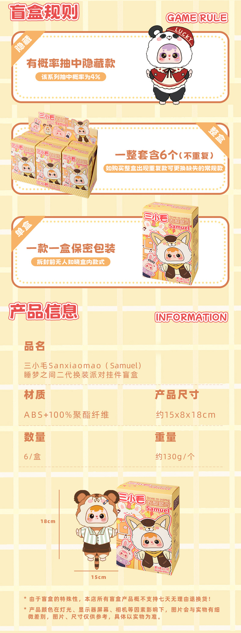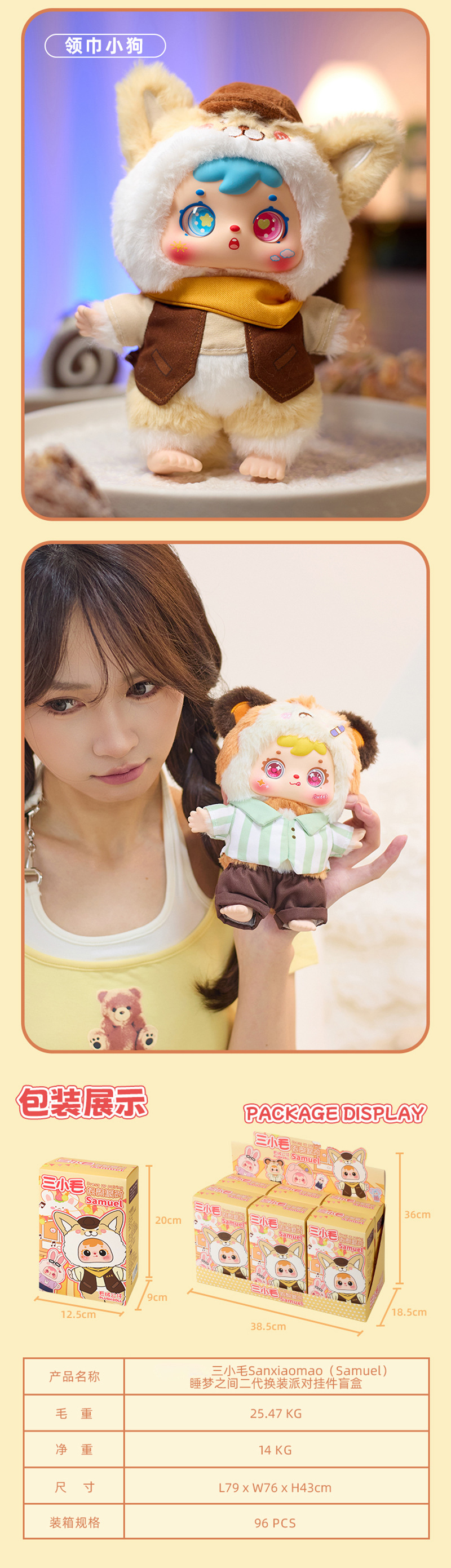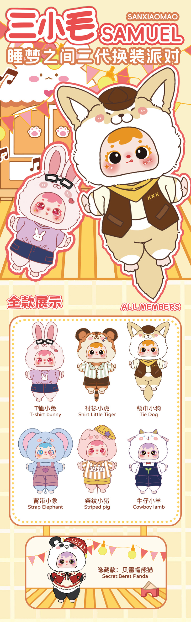 MR1045 Three Little Hair (Samuel) Sleeping Dream Party Two Generation Change Outfit Plush Hanger Blind Box |