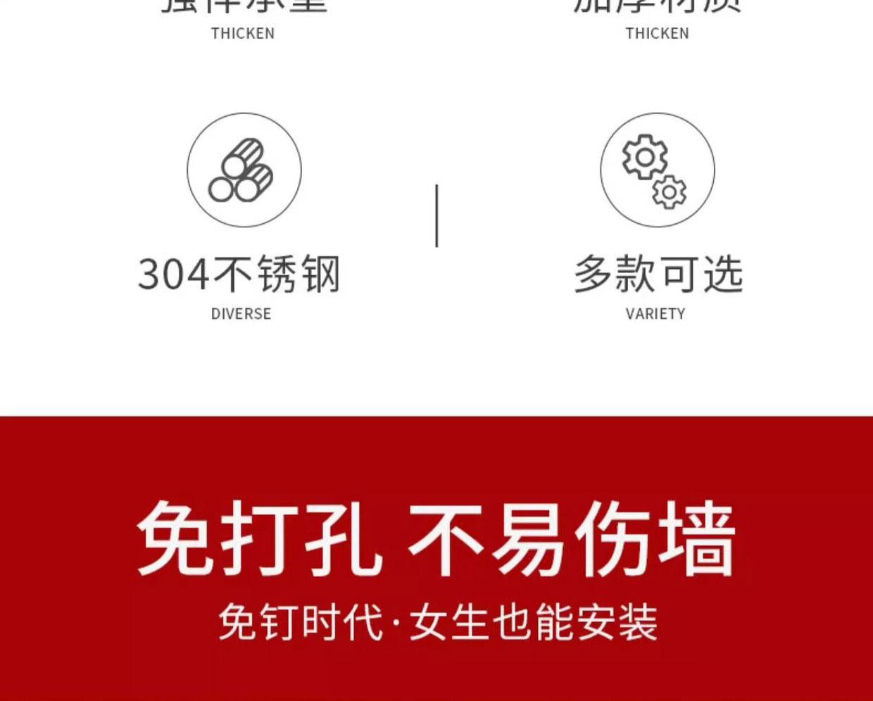 8 hooks-2 pieces (free expansion screws + nail-free glue)